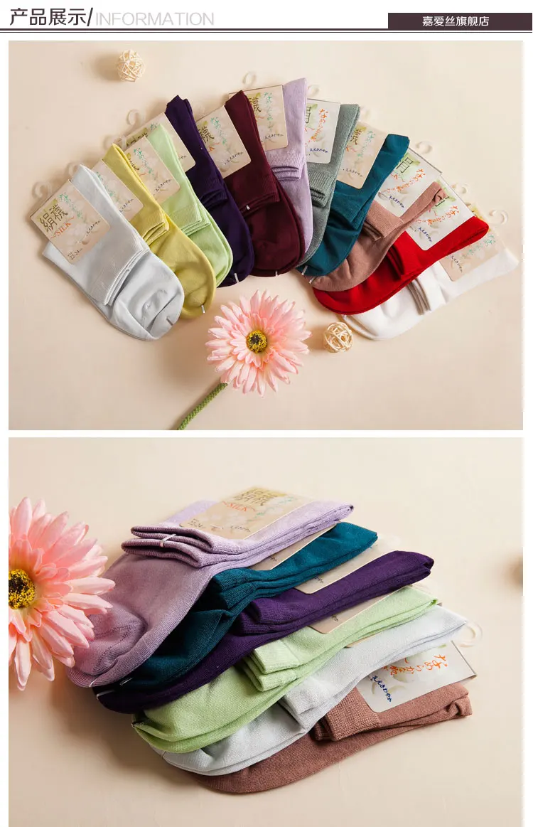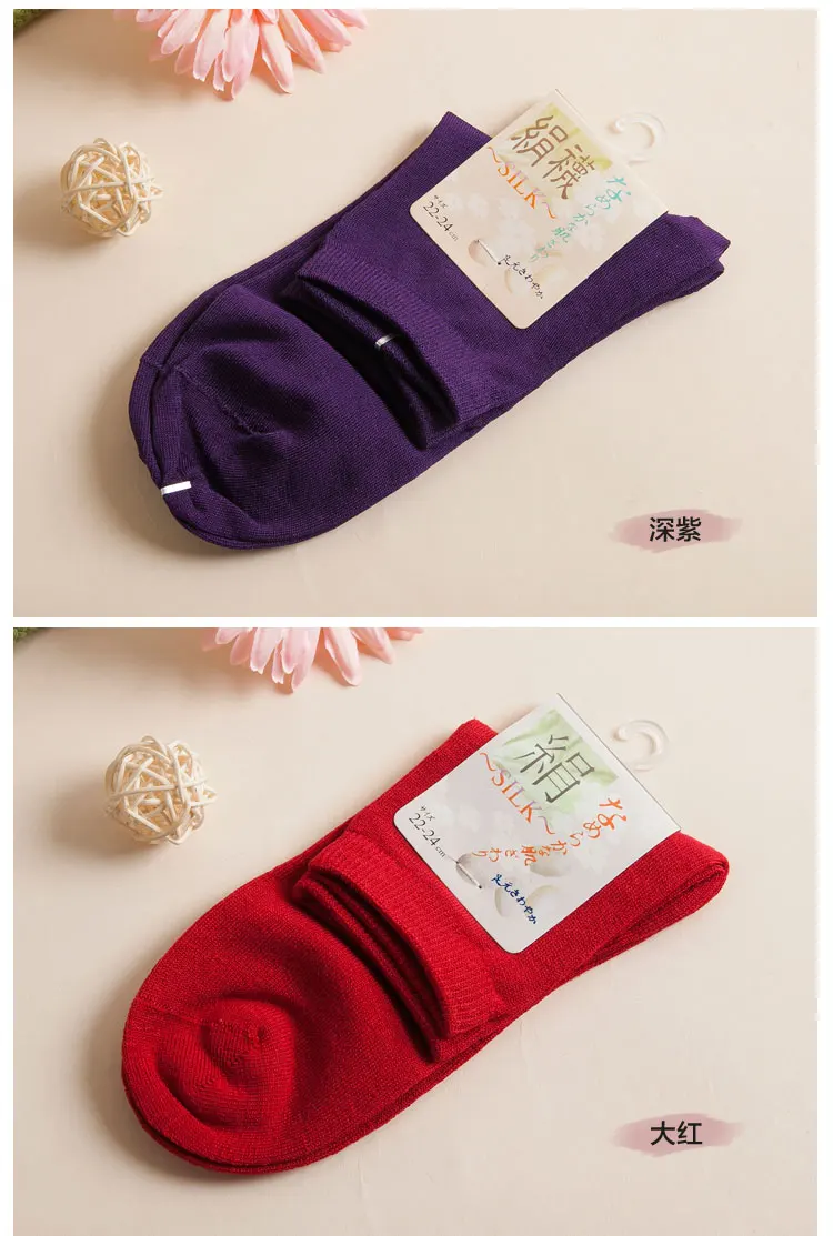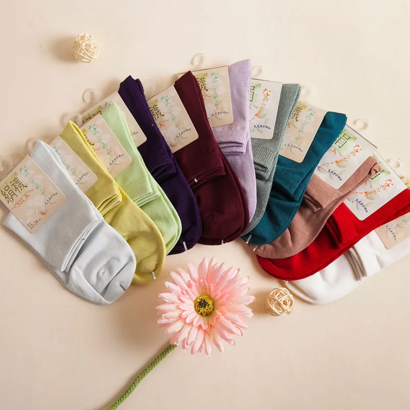 Многоцветные шелковые носки, женские носки из 70%- 80% шелка, дышащий дезодорант с высоким содержанием шелка