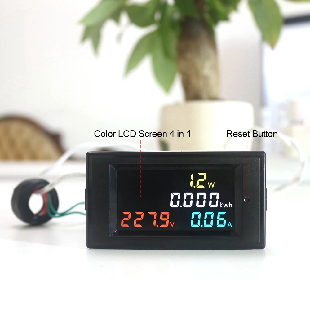 Цифровой HD Цвет Экран 180 градусов безупречный светодиодный AC Вольт Ампер ватт энергии метр AC 110V 220V 0,01-100A Вольтметр Амперметр