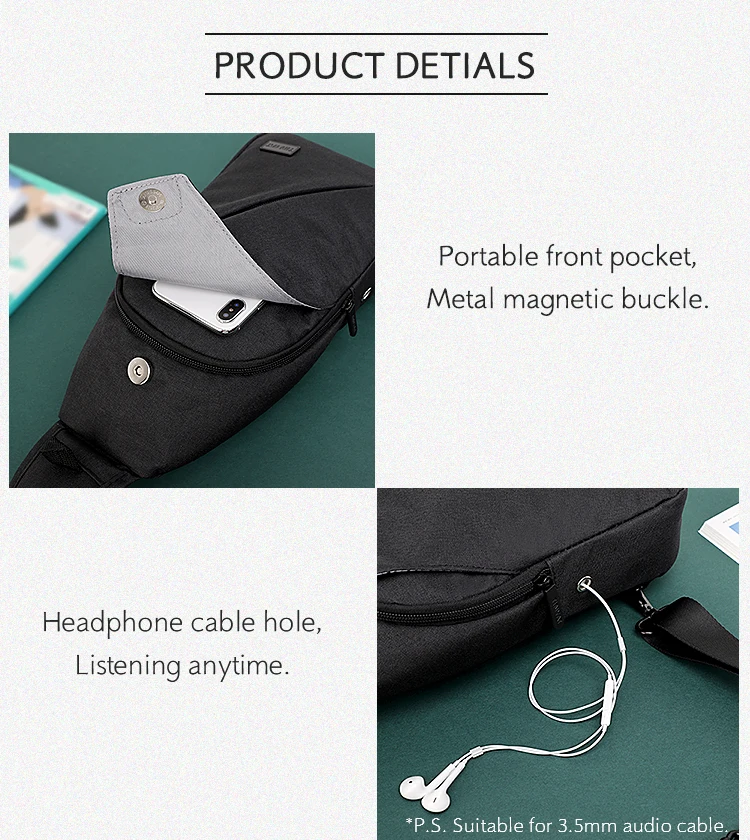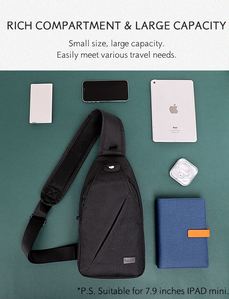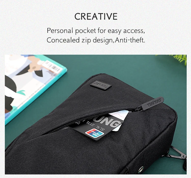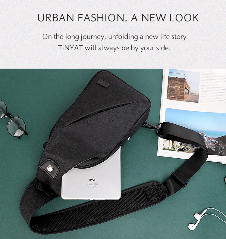 TINYAT Сумка-слинг для 7,9 pad, черная Повседневная функциональная Мужская нагрудная сумка с двумя разъемами для наушников, мужские Наплечные сумки-мессенджеры