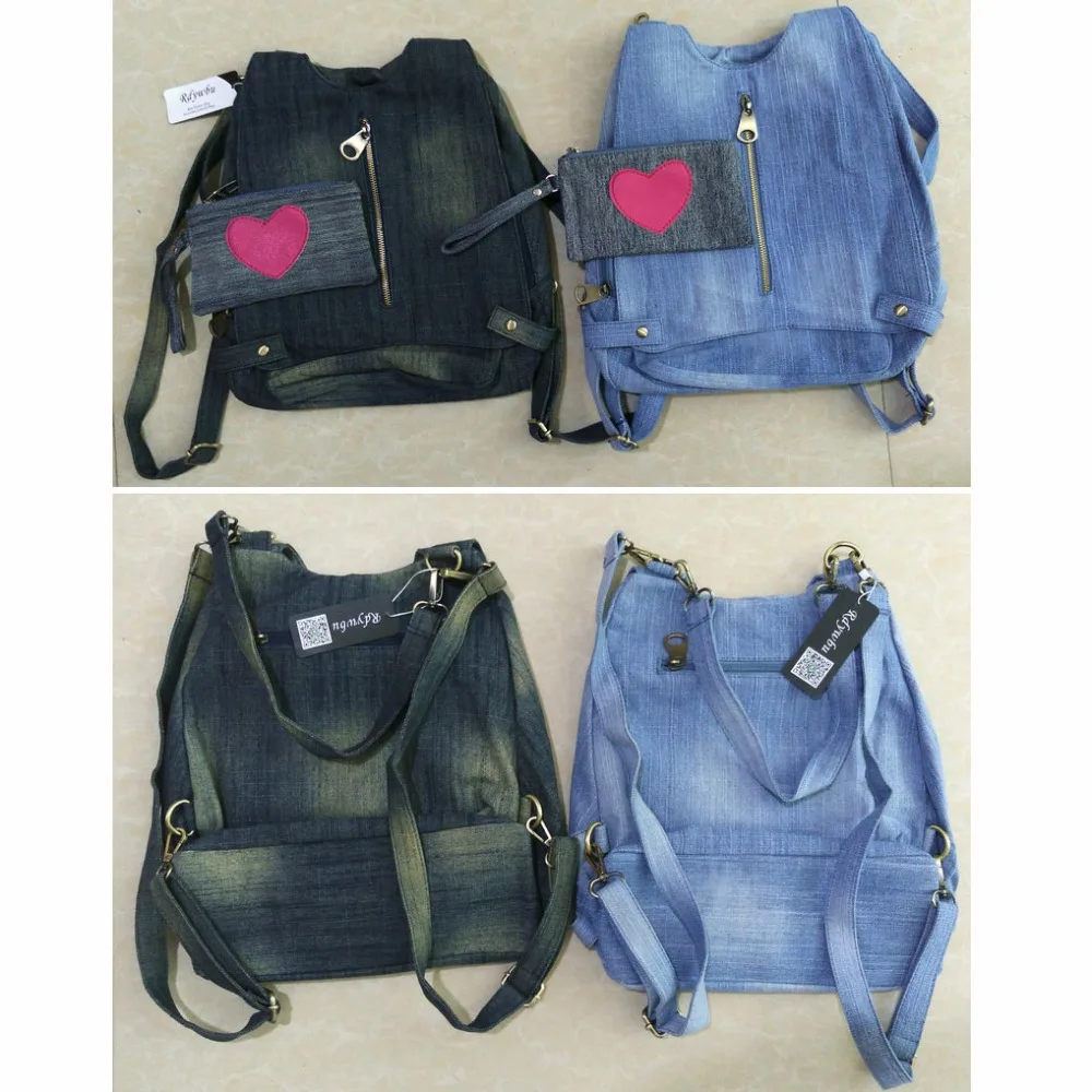 Женский винтажный рюкзак Rdywbu из потертого денима, модный многофункциональный дорожный ранец на ремне для девушек, большая сумка для кампуса, B187