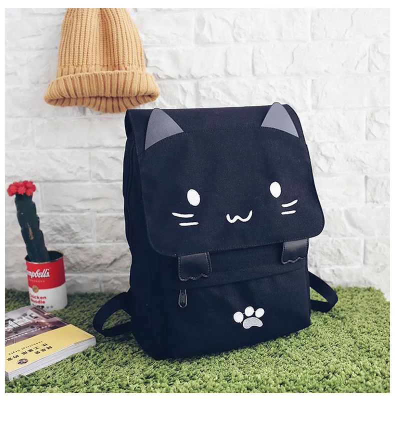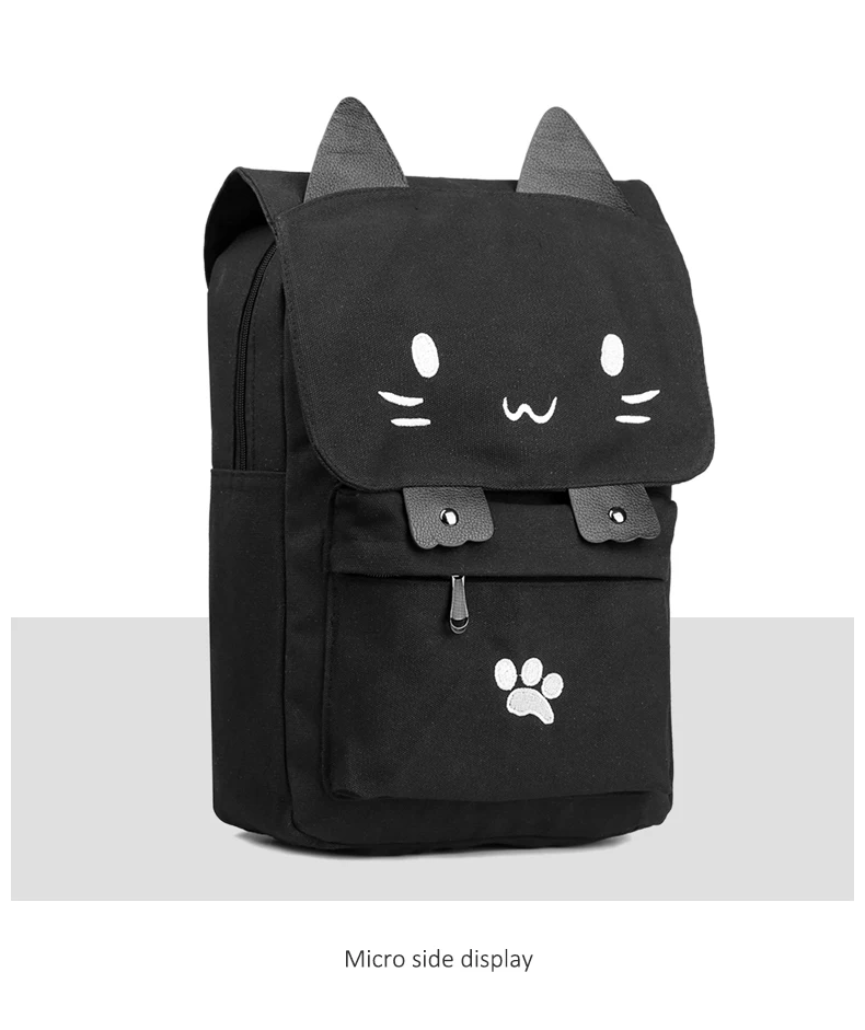 Холщовый Рюкзак для девочек-подростков, с изображением милого кота, с вышивкой из мультфильмов, школьная сумка, Модный черный рюкзак с принтом, mochilas XA69H