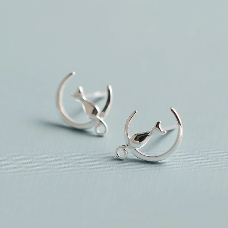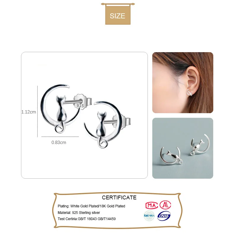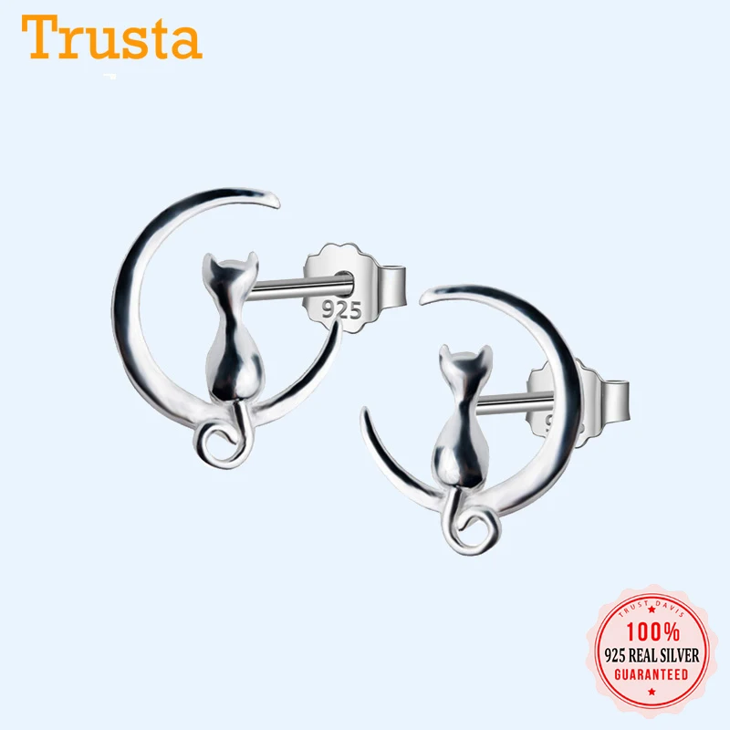 Trustdavis новые женские модные серьги-гвоздики из стерлингового серебра 100% пробы с маленьким милым котом на Луне подарок для девочек и детей DT74