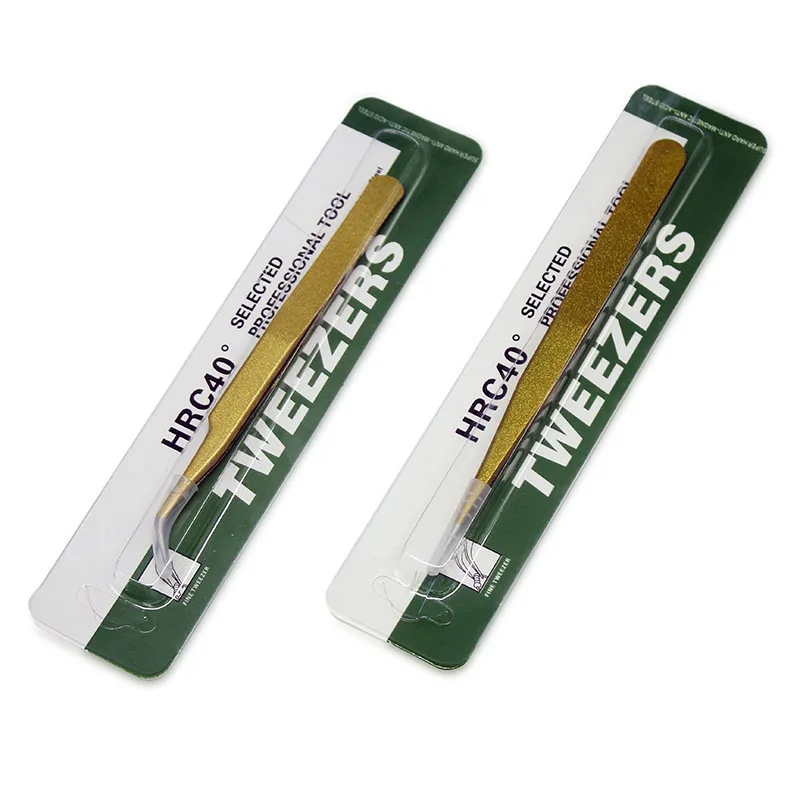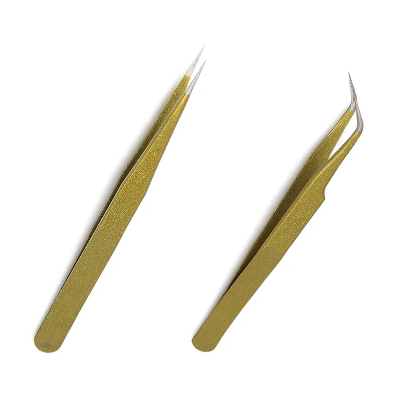 2 шт.лот изогнутые и прямые пинцеты из нержавеющей стали для наращивания накладных ресниц, инструменты для макияжа, золотой пинцет