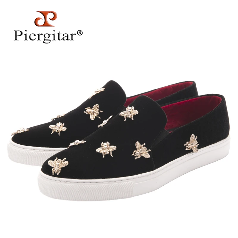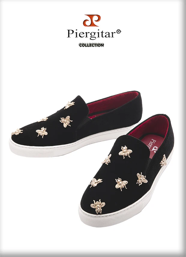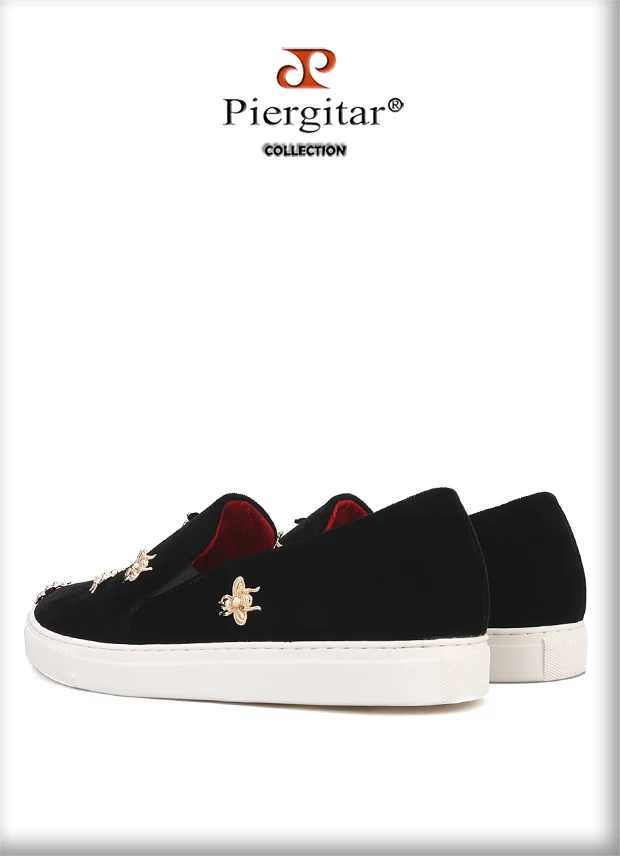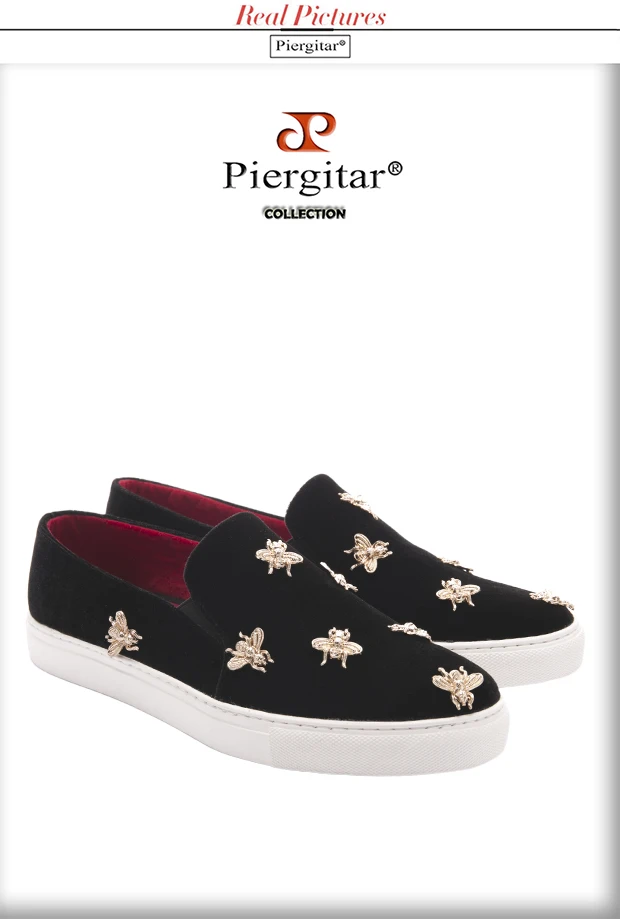 Мужские бархатные туфли Piergitar ручной работы, Стильные лоферы с золотистыми металлическими пчелами, в повседневном стиле, новый дизайн, весналето