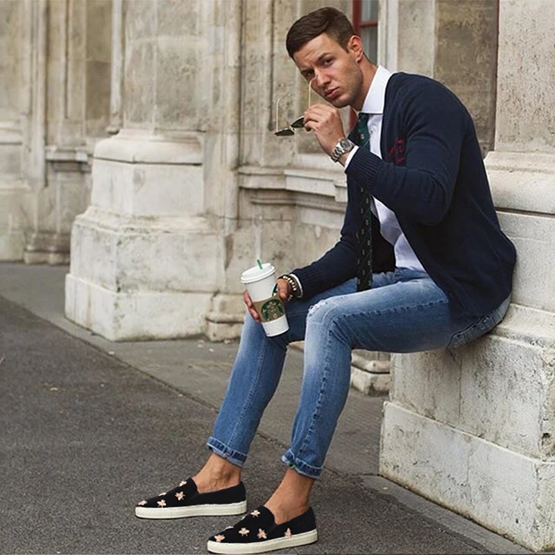 Кроссовки Piergitar мужские с вышивкой, черные, бархатные спортивны...