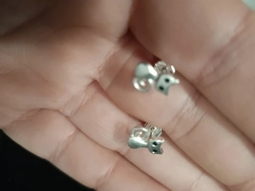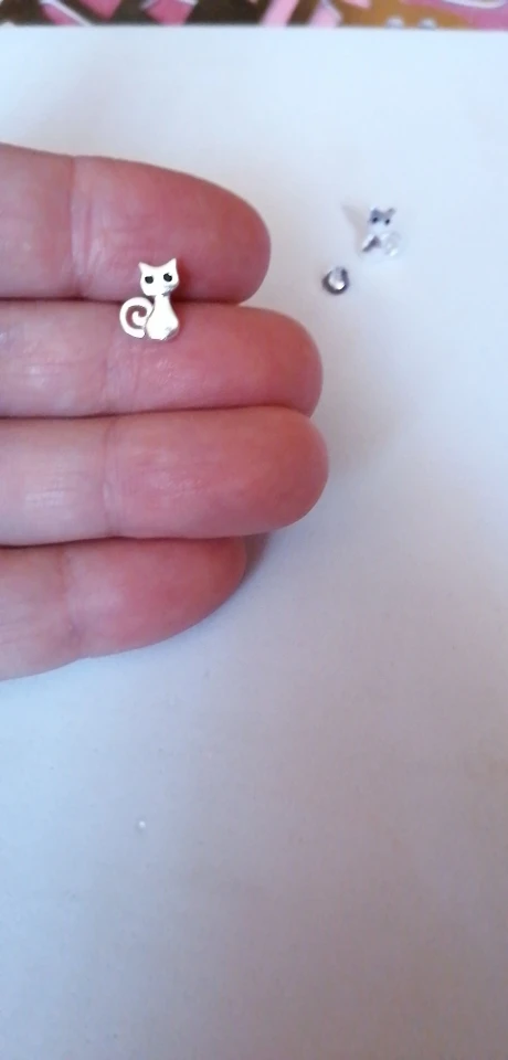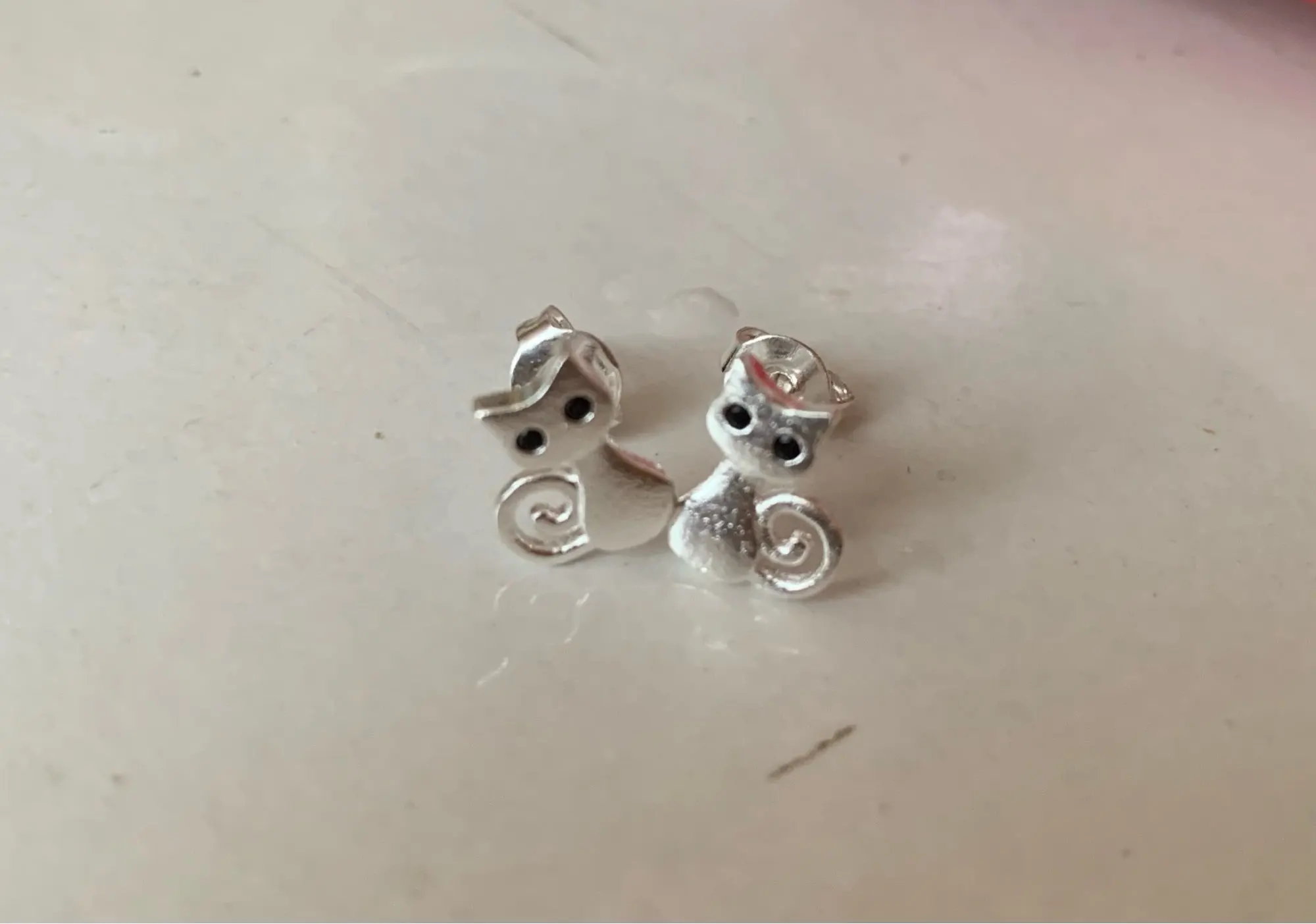 Женские серьги-гвоздики серебряного цвета с изображением кота