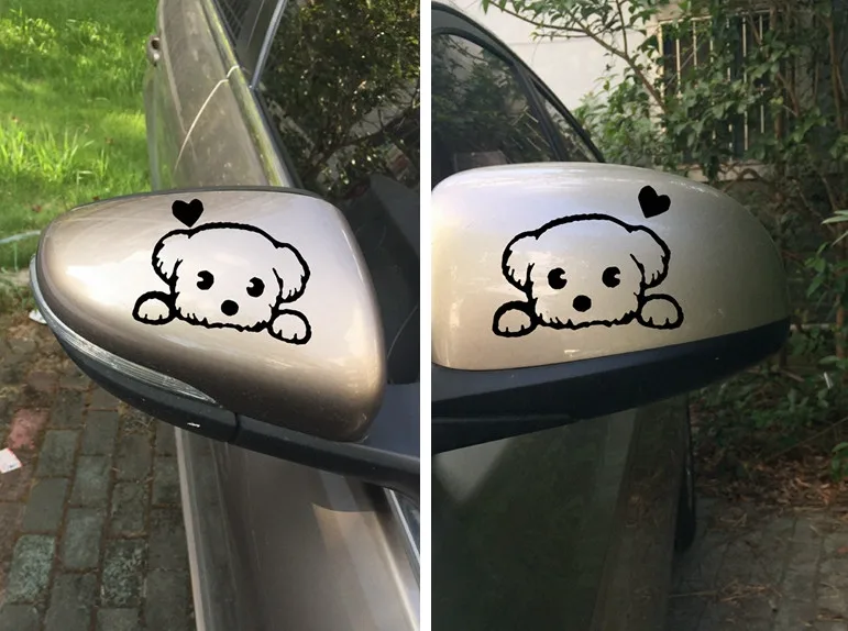 2 шт.компл., виниловые автомобильные наклейки в виде милой собаки, наклейки на зеркало заднего вида автомобиля, украшения для бокового зеркала автомобиля L + R