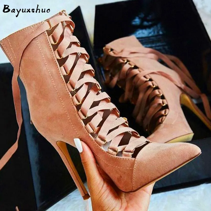 Размера плюс женские туфли-гладиаторы на высоком каблуке; Босоножки на шпильке с острым носком; Туфли-лодочки на шнуровке с ремешками; Женские ботинки
