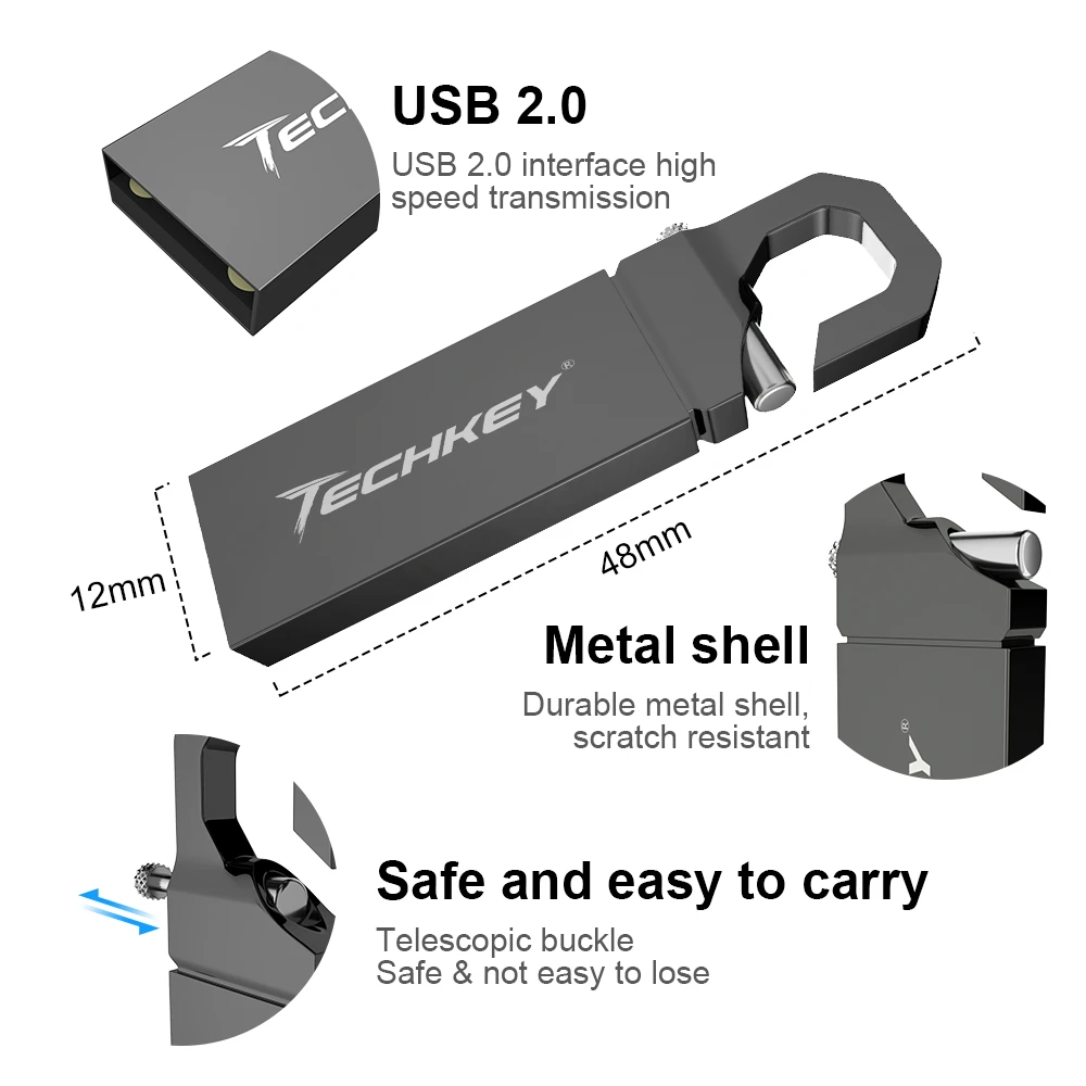 Usb флеш-накопитель Techkey, металлический, серебристый, горячая распродажа, 8 ГБ, 16 ГБ, 32 ГБ, U-диск, флешка, прямоугольная, USB 2,0