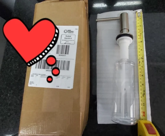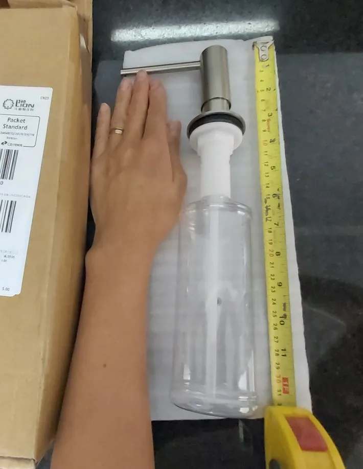 Пришло за 3 недели. В целости и сохранности. Материал добротный. К сожалению, не подошёл к моей раковине, так как у неё узкие бортики, а в столешницу слишком далеко. Но я всё равно дозатор оставила, приспособлю когда буду делать ремонт на кухне.