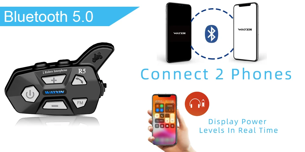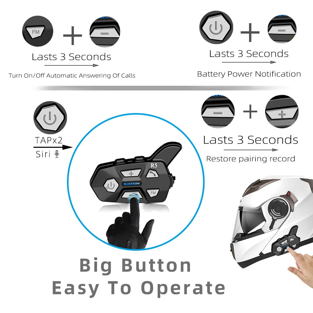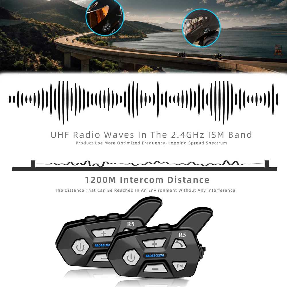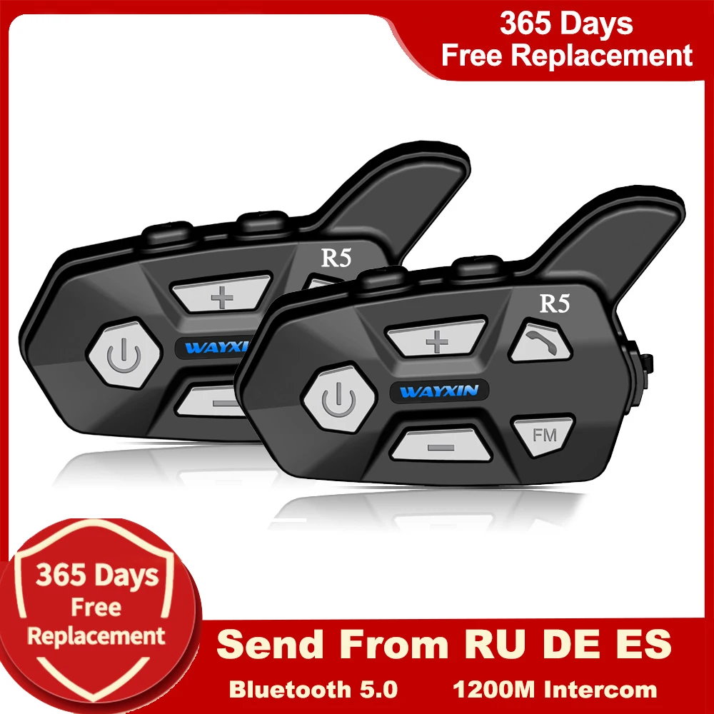 WAYXIN Bluetooth 5,0 мотоциклетная Интерком Helme 2 человек 1200 м говорящая универсальная сопряжение Водонепроницаемая Переговорная гарнитура fm-радио