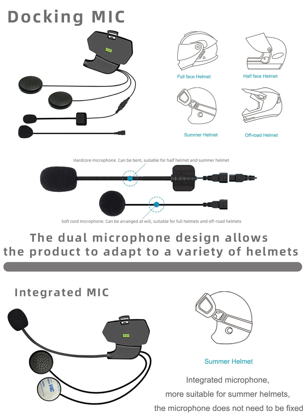 Я еще не ездил на мотоциклетных шлемах, я попробовал его в разобранном виде, и он хорошо слышен и прекрасно соединяется друг с другом, я переоценил, когда попробую их на мотоциклетных шлемах