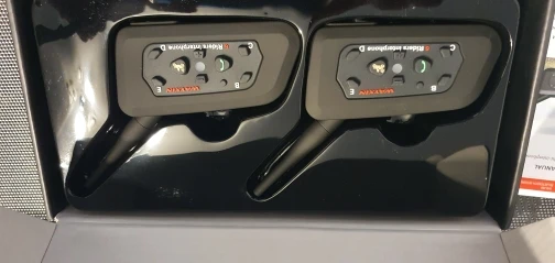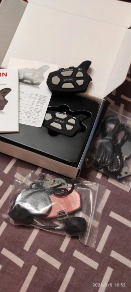 Отличное качество. Звук отменный. В качестве гарнитуры к телефону работает на 100%. Через Bluetooth звук великолепный. Насыщенные басы. Через интереком звук чуть хуже, но слышно хорошо. Все согласно описанию и комплекту. 2 основных устройства. 2 варианта микрофона. 2 кабеля зарядки. 2 крепления на шлем. Фирменная упаковка. Рекомендую к покупке.