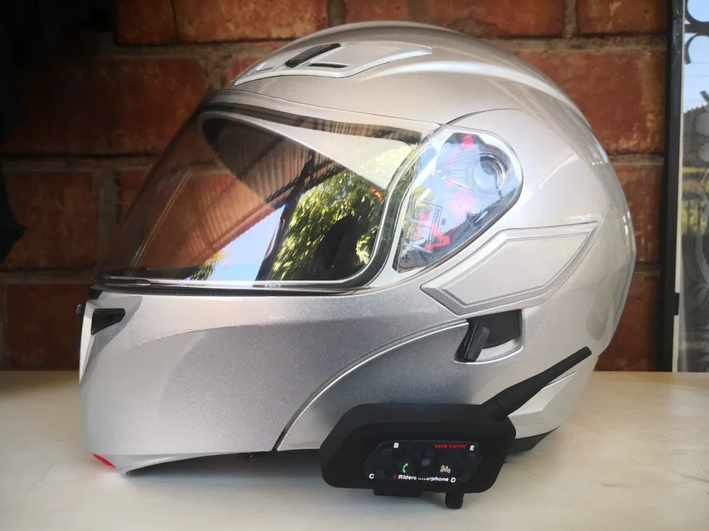 Хорошая работа. Простая установка. Зажим немного трудно носить на двух шлемах, лучшая вещь, которая работает для меня, это клей 3M. Простое подключение и хороший диапазон bluetooth с мобильным устройством. Я не пробовал диапазон между мотоциклами, но я планирую использовать его с тем, кто носит упаковку
