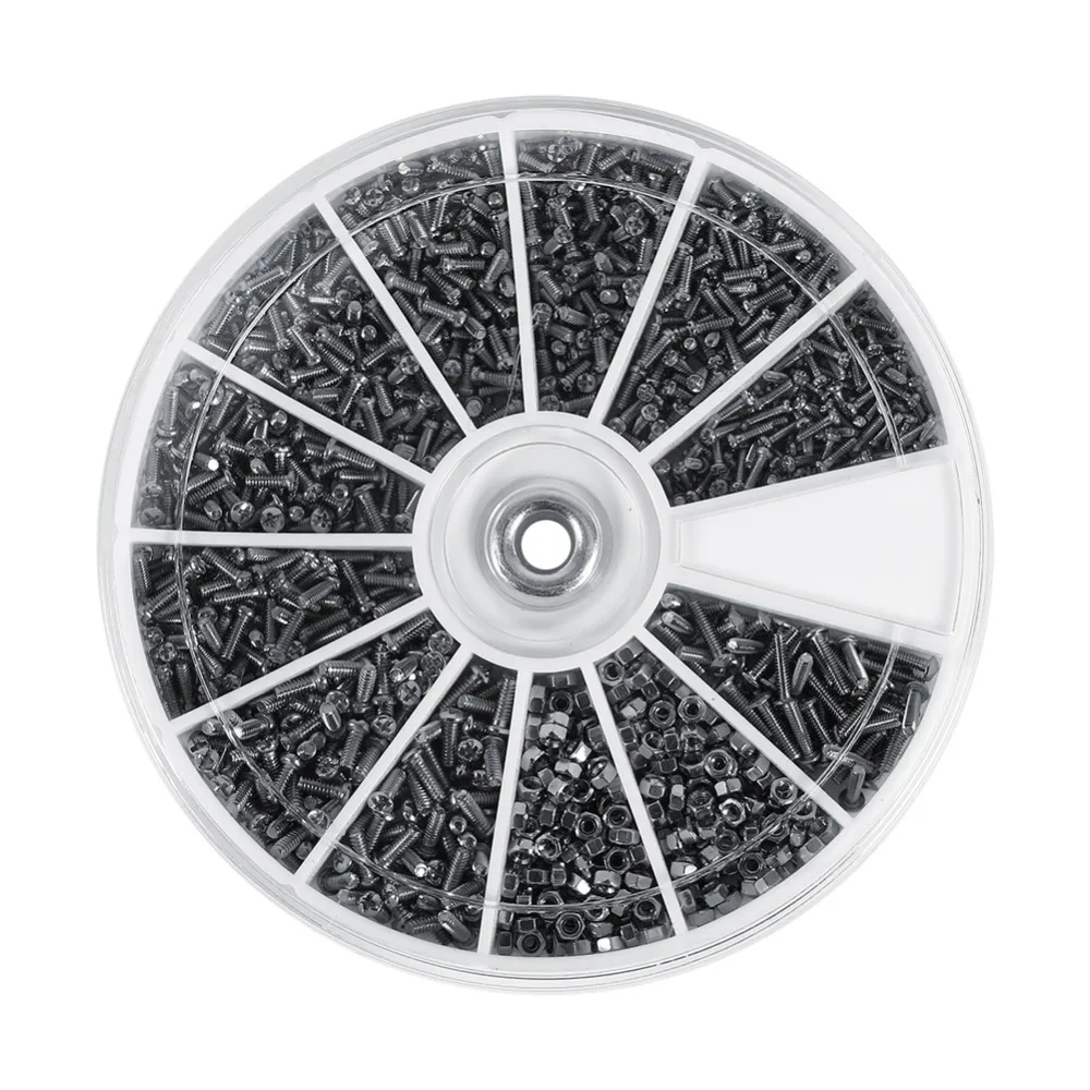 Доступны 12 видов небольших винтов и гаек в ассортименте, M1 M1.2 M1.4 M1.6. Всего 600 шт., и вы можете использовать их довольно долго. Хорошо упаковывается и упаковывается в пластиковую коробку, не беспокойтесь о повреждении или расстройстве. Хороший ассортимент винтов. Дизайн коробки приятный и легко вынуть, правильный винт. Отлично подходит для часов, очков, электроники или другого ремонта, требующего небольших винтов.