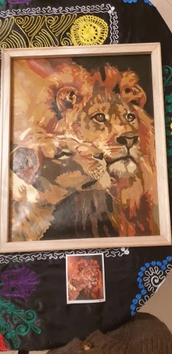 Картина понравилась, краски свежие, но разочаровало то, что крепления для картины пришли ржавые и неудобное для меня - что нет подрамника.