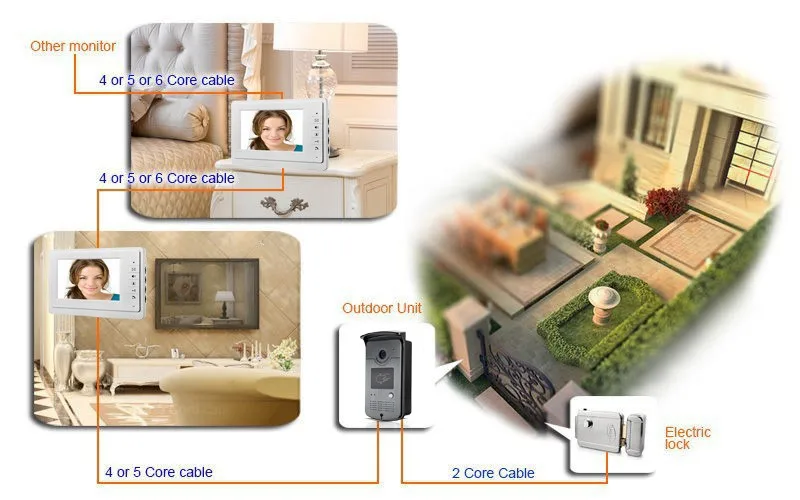 Добро пожаловать в наш магазин, выбирайте больше товаров:Http://www.aliexpress.com/store/14540307-дюймовый видеодомофон с RFID-картой с 1 камерой + 1 монитором + питанием + дверным выходом + электрическим замком