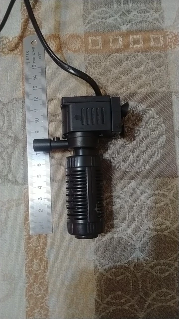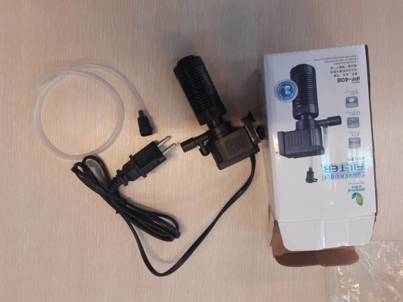 Хороший мини-фильтр. Для аквариума с маленьким литражом отлично подойдёт. Конструкция простая и надёжная. Вилка с переходником на евро розетку. Есть нюанс. Опущенный ниже 3см над водой не может качать воздух. Не хватает мощности помпе.