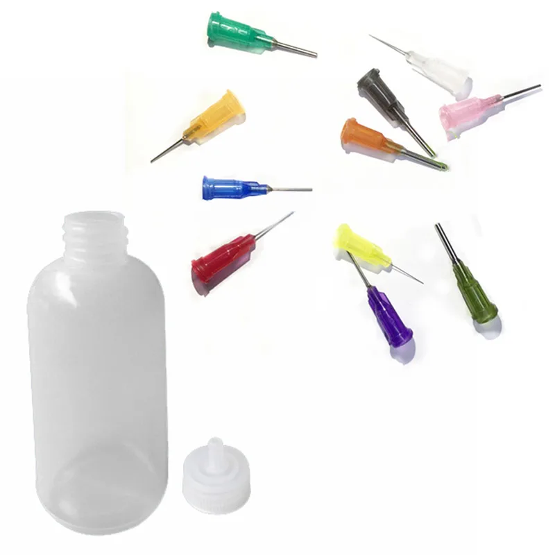 Высокое качество пустая прозрачная полиэтиленовая игла дозатор бутылка для канифоли пасты флюса + 11 игл 50 мл