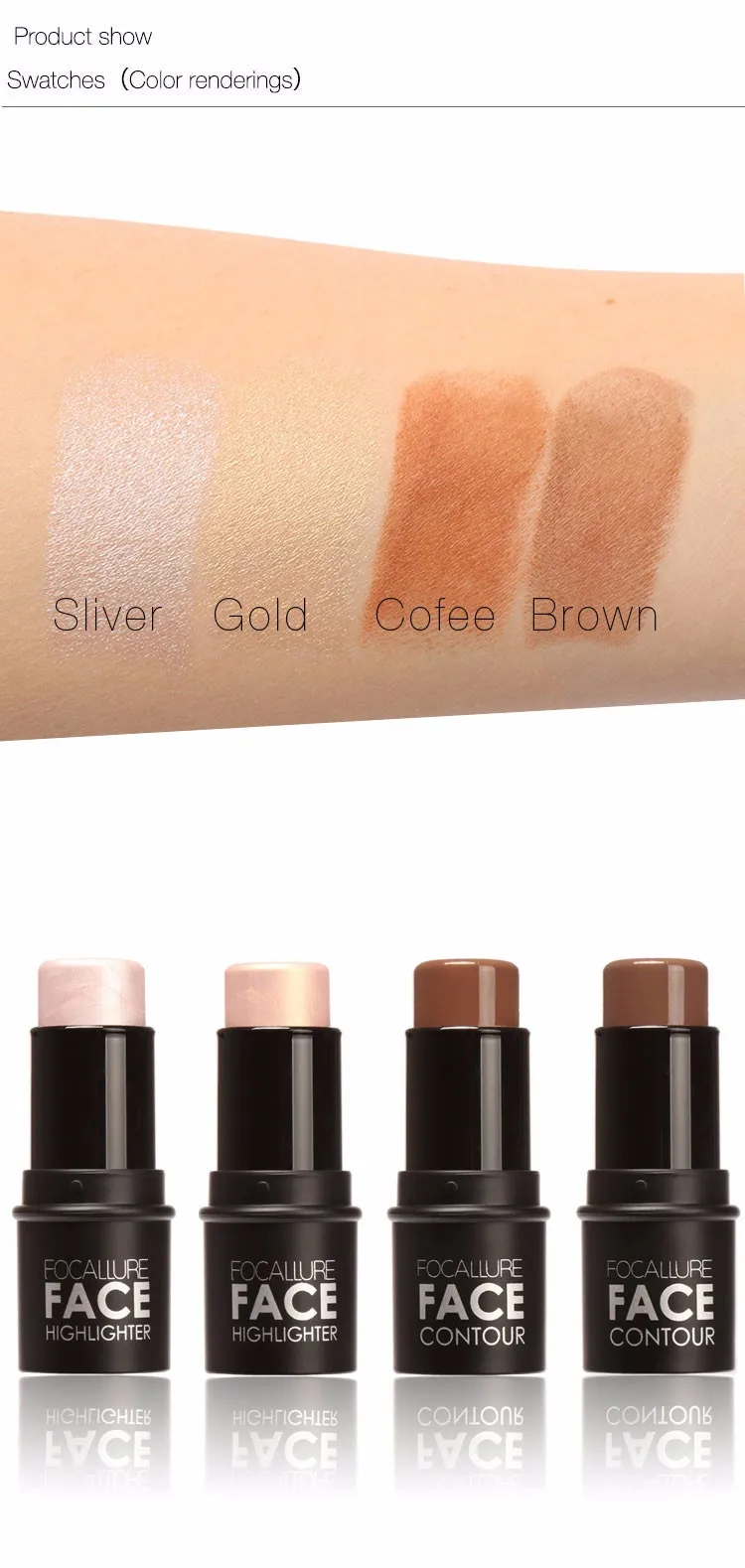 Focallure Макияж для лица 4 цвета Мерцающая палочка-подсветка осветляющая пудра кремовая текстура серебристый блеск светлый