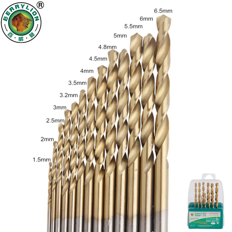 Набор спиральных сверл BERRYLION, 1,5-6,5 мм, из быстрорежущей стали, M2, по дереву, металлу, 13 шт.