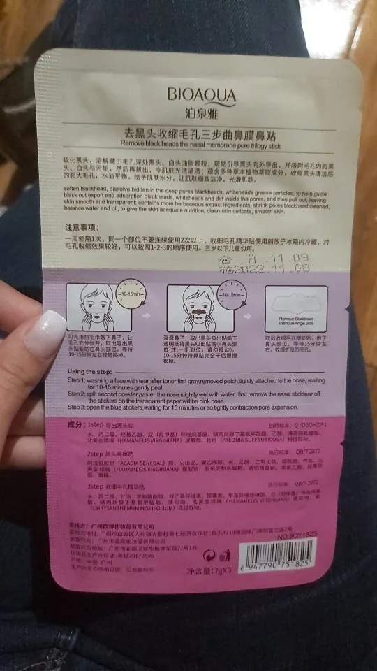 Особенности:100% новый и высокое качество!3 шага эффективного ухода за вашей черной головойУдаление черных точек и затягивание порНаименование товара: Маска для носаИспользование: T ZoneВес нетто: 21 млЦвет: 2 цвета на выборКоличество: 1 шт. Метод использования:1. После очистки носа чистой водой Положите «1 комплект» на нос. Затем через 15-20 минут вы можете снять его.2. Очистите нос снова водой (вы должны держать нос влажным водой), затем положите «шаг 2» на нос. Затем подождите 10-15 минут, когда патч «шаг 2» станет полностью сухим, снимите его.3. Положите «шаг 3» на нос. Через 5-10 минут вы можете снять его.