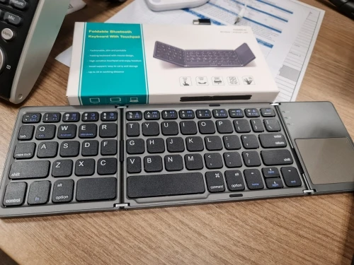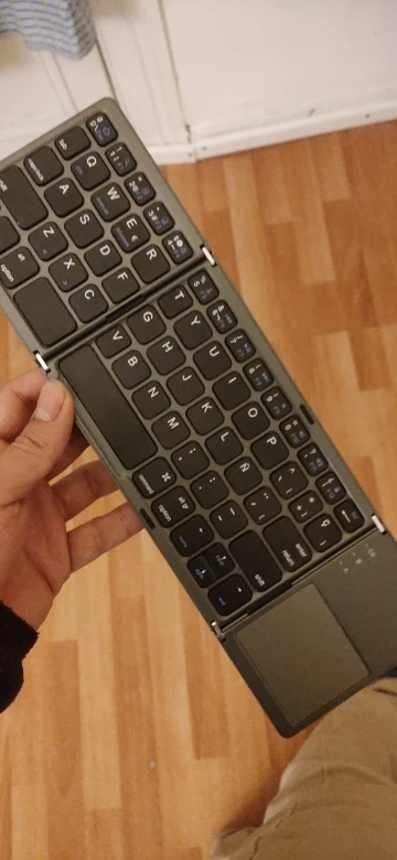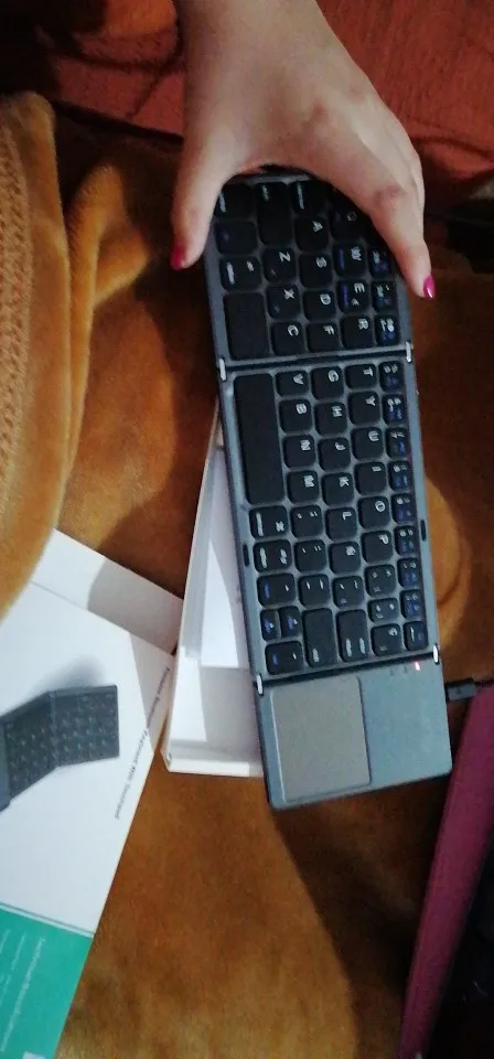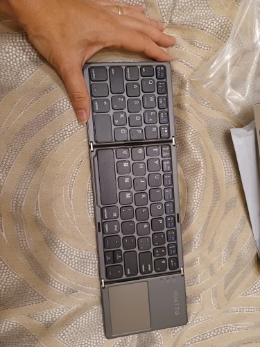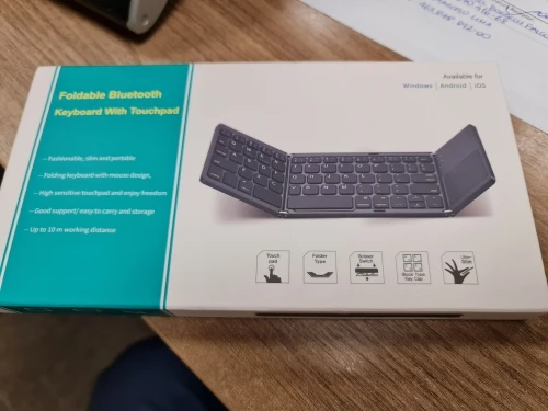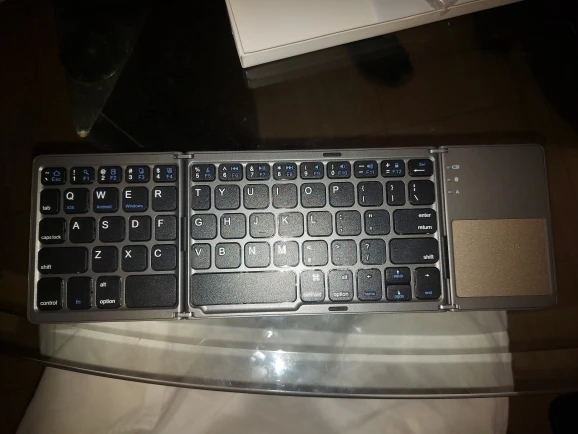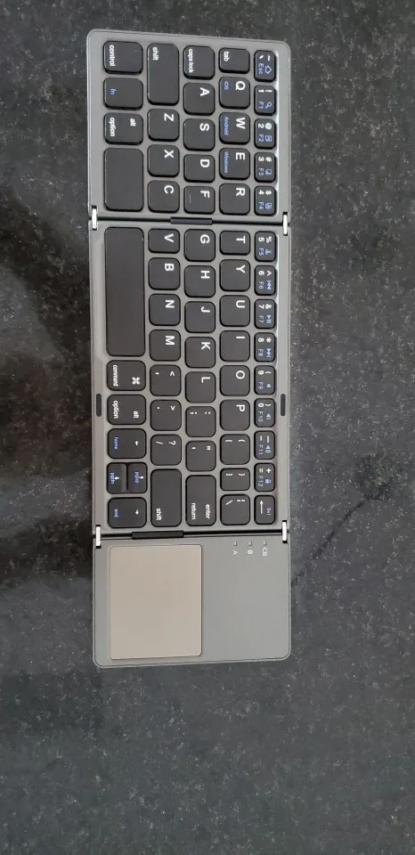 Очень хорошо работает, быстро подключается и кнопки отличные. Новое подключение требует вставки штифта на клавиатуру. Легко складывается. Пробел разделен, поэтому может быть немного странным. Менее удобный, чем обычная клавиатура, но в данных обстоятельствах это нормально. Изменение языка требует особого определения в вашем определенном устройстве.