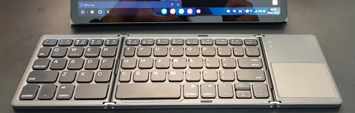 Красивая маленькая клавиатура, тонкая и компактная, очень высокое качество. Отличный складной механизм и Магнитная защелка. Коврик для трека является очень удобным включением, и клавиши клавиатуры чувствуют себя очень хорошо. Ключи немного малы рядом с шарниром, поэтому есть небольшая кривая обучения, если вы хотите прикоснуться к этому типу, но это не огромная проблема.