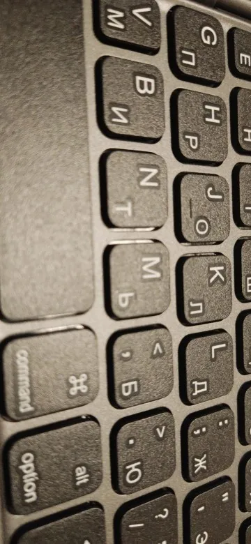Маленькая, но критичных неудобств нет (хотя не очень привычны узкие 'е' и 'м'). Тачпад шершавый, точный. Проблем с подключением к ноутбуку не было. Tiny, but without critical uncomfortable things (yes, the a little difficult to get 't' and 'v'). However, fully useful. TouchPad is abrasive, movement are exact. No problem with connecting to a laptop.