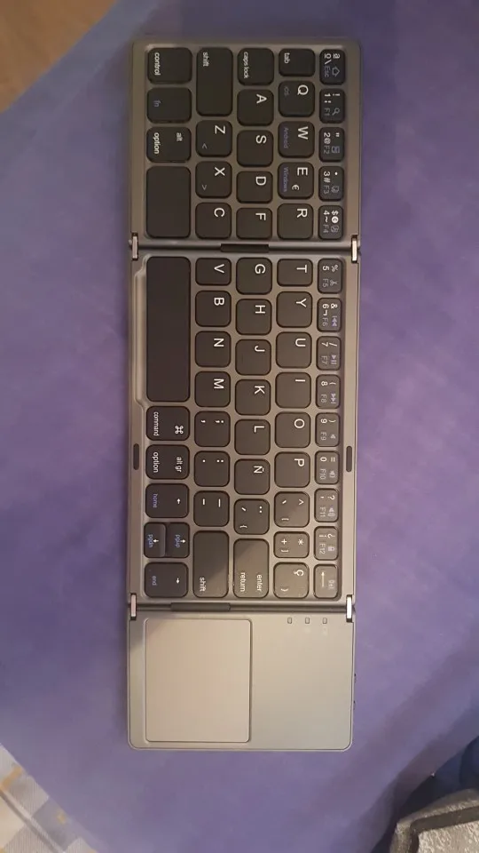 Очень хорошая клавиатура, стоит немного привыкнуть к письму, так как они складывают ту же клавиатуру, но как только вы берете ее, ритм очень похож и также портативный. Тачпад не очень точный, но работает. Это пластик, но хорошо сложенный
