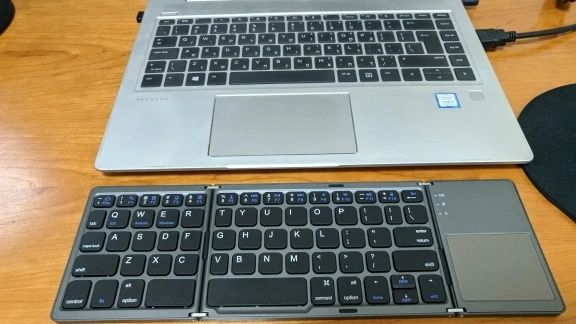 Все работает, доставлено быстро! Сборка хорошая, в сложенном состоянии фиксируется на магнитах, а вот разложенном состоянии клавиатура не фиксируется совсем – это минус, потому что печатать в дороге на коленках практически невозможно. Однако, как мне кажется, это одна из лучших компактных клавиатур на рынке именно с русской раскладкой.