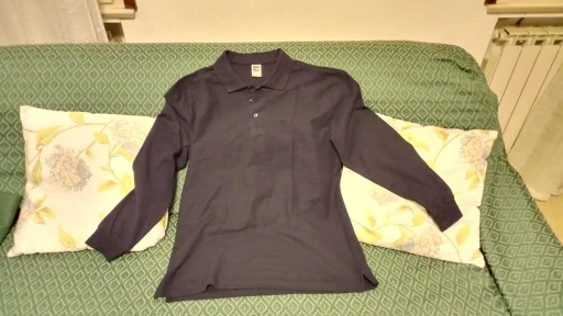 Нормальное поло, но цена завышена. На фото представлено поло другого из материала. Это простой материал, к нему все липнет. Футболка с рукавами. Размер мужу подошёл. Его рост - 184, объём груди - 104, плечи-49. В Питер посылка шла почти месяц.
