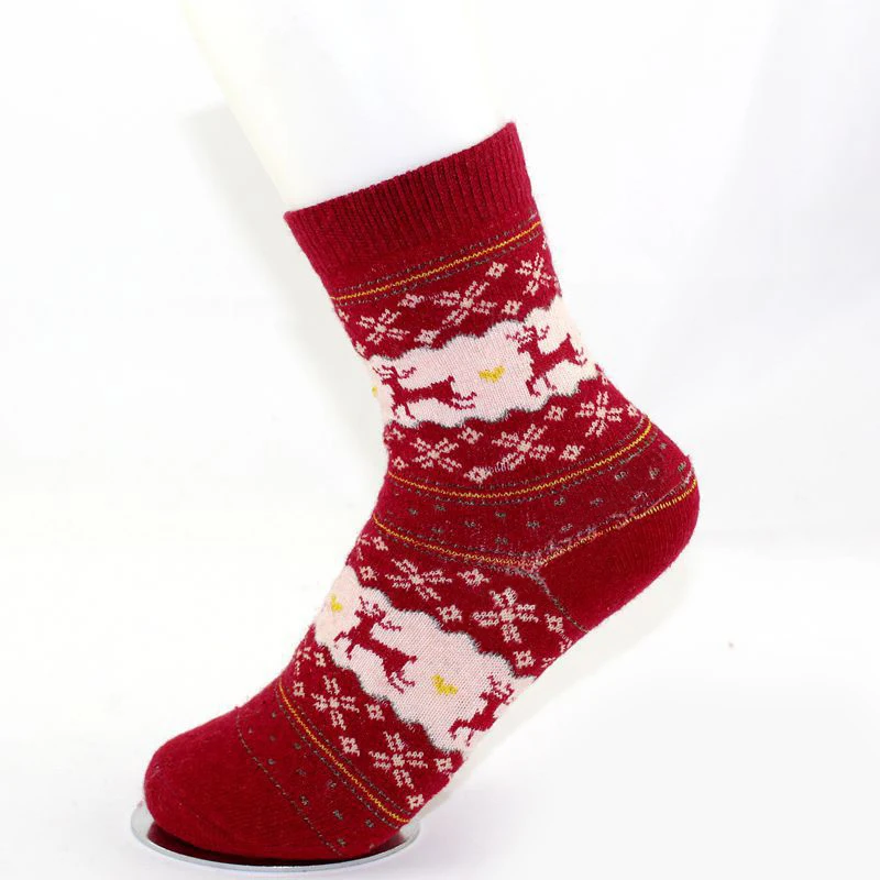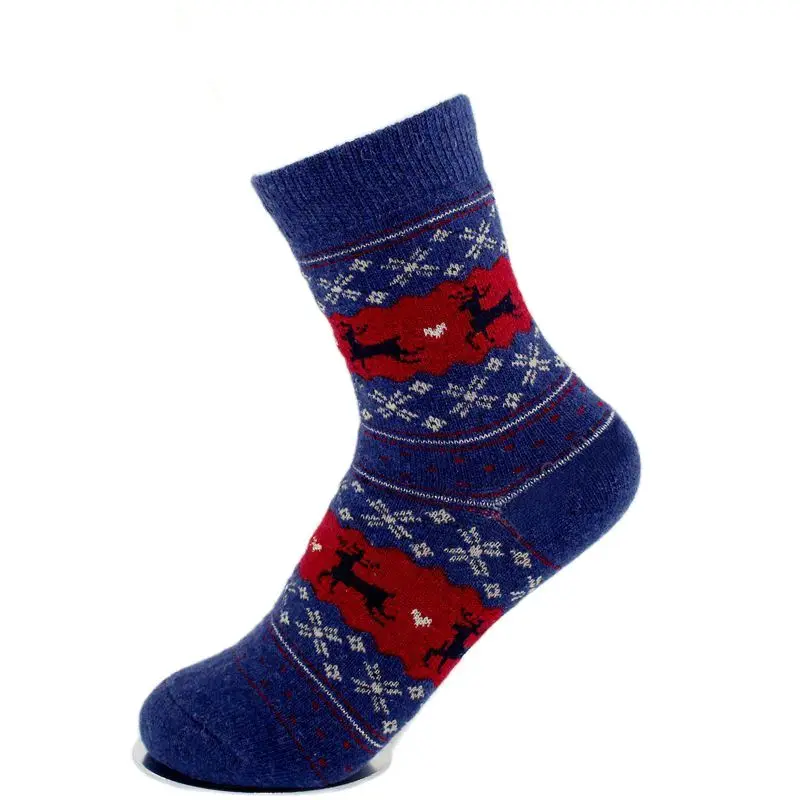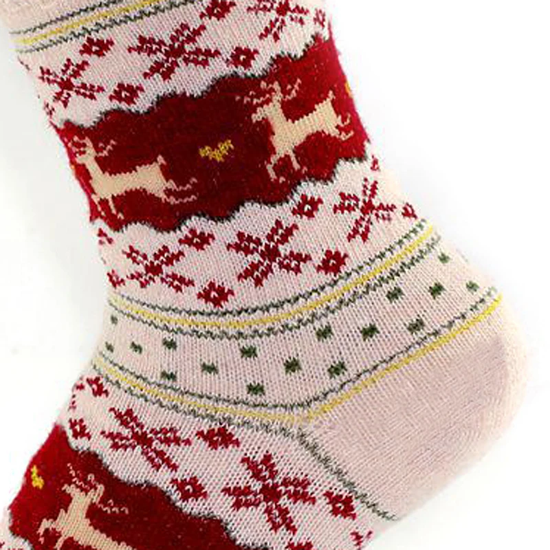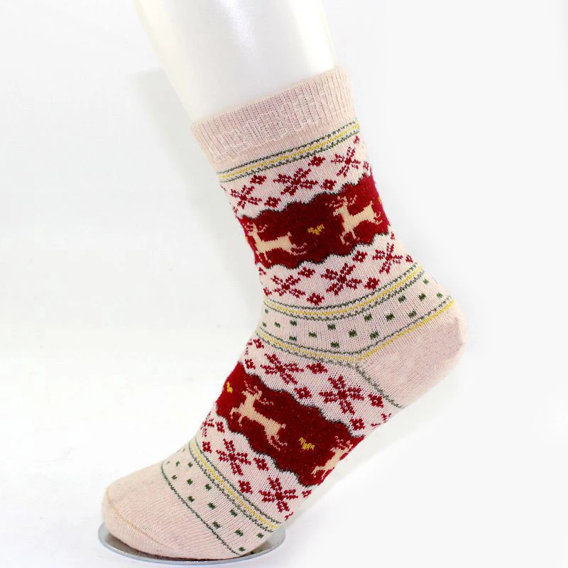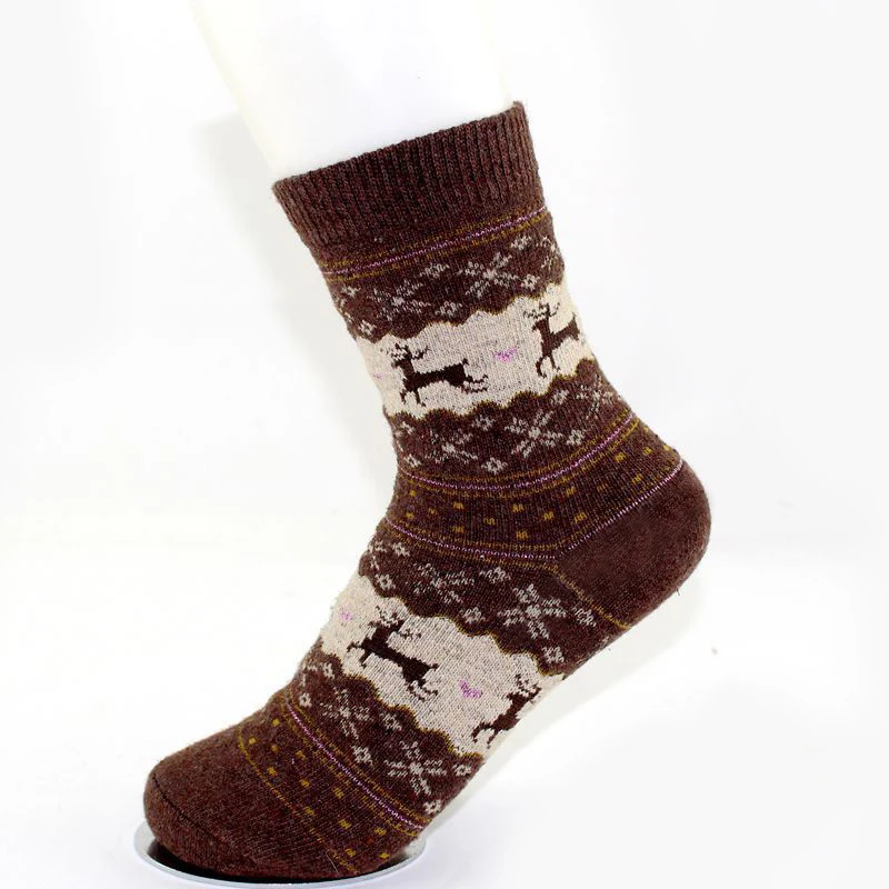 Модные теплые плотные носки из кроличьей шерсти на осень и зиму, рождественские носки для женщин средней длины, качественные мягкие носки в стиле ретро с изображением рождественского оленя