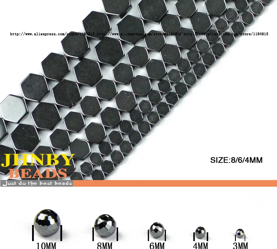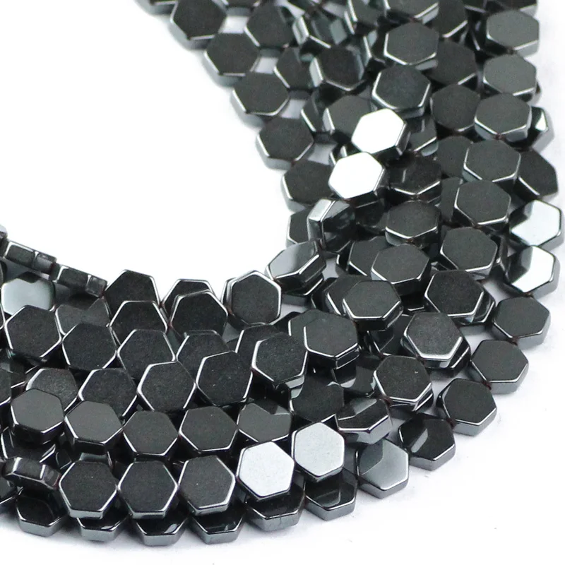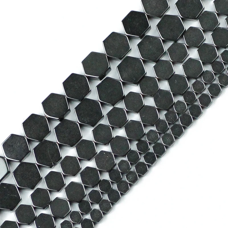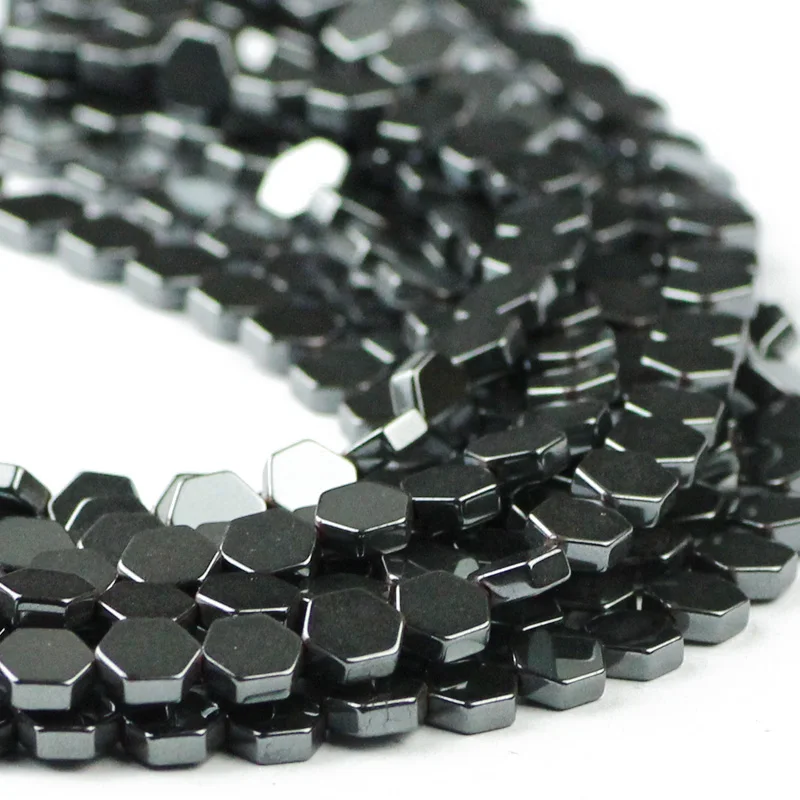 Шестигранные черные разделители из гематита и натурального камня, 468 мм, бусины россыпью для искусственных ожерелий, аксессуары сделай сам