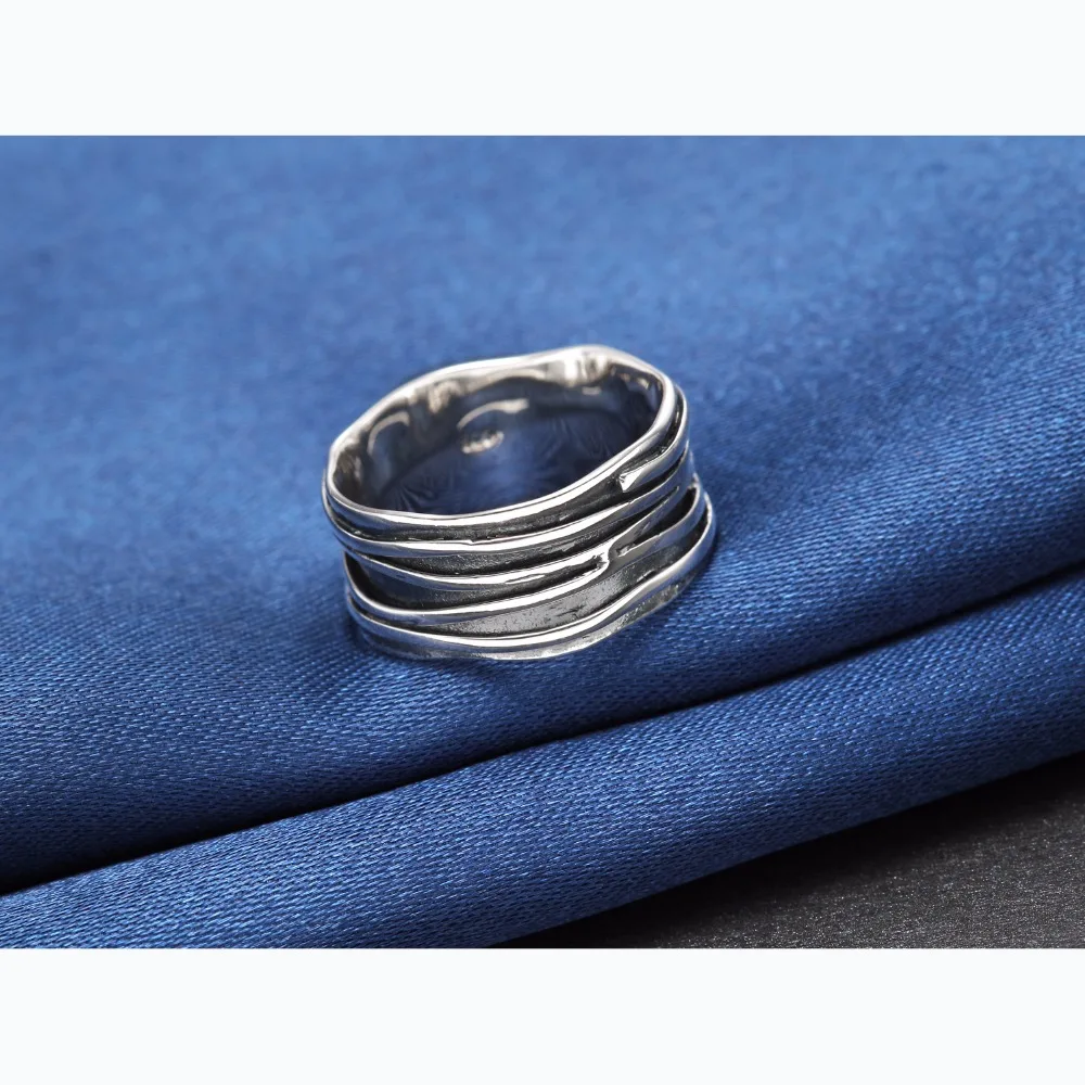 Tigrade Настоящее чистое серебро 925 пробы кольцо с узором Простые ...