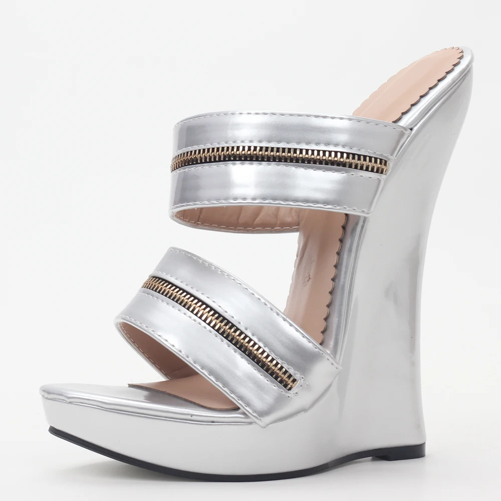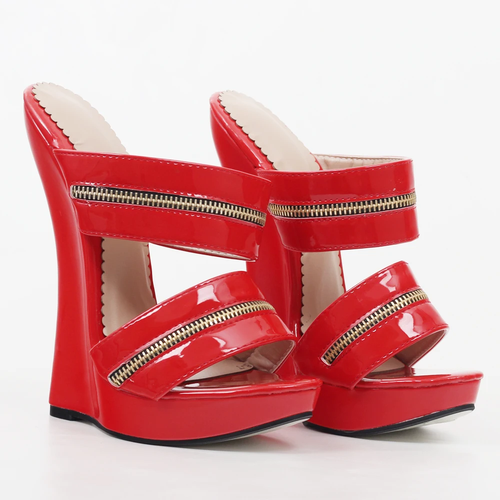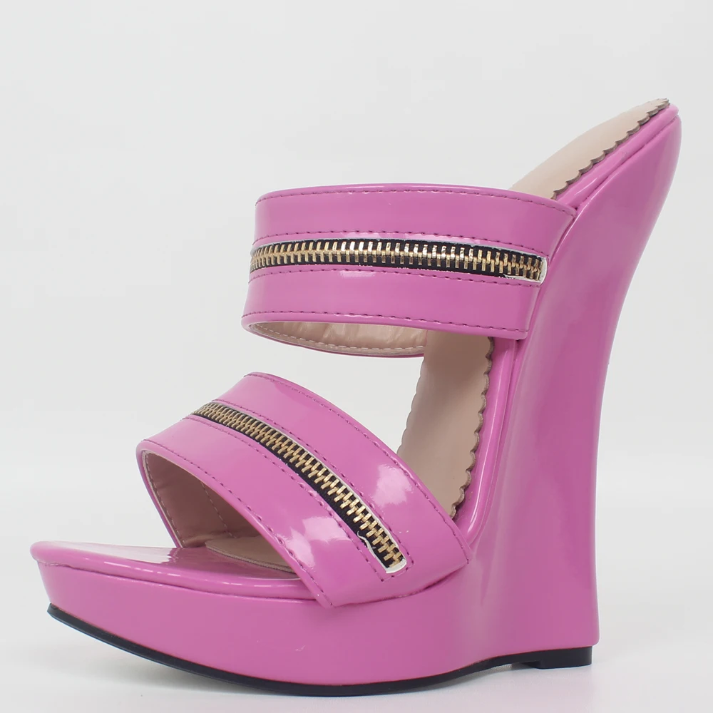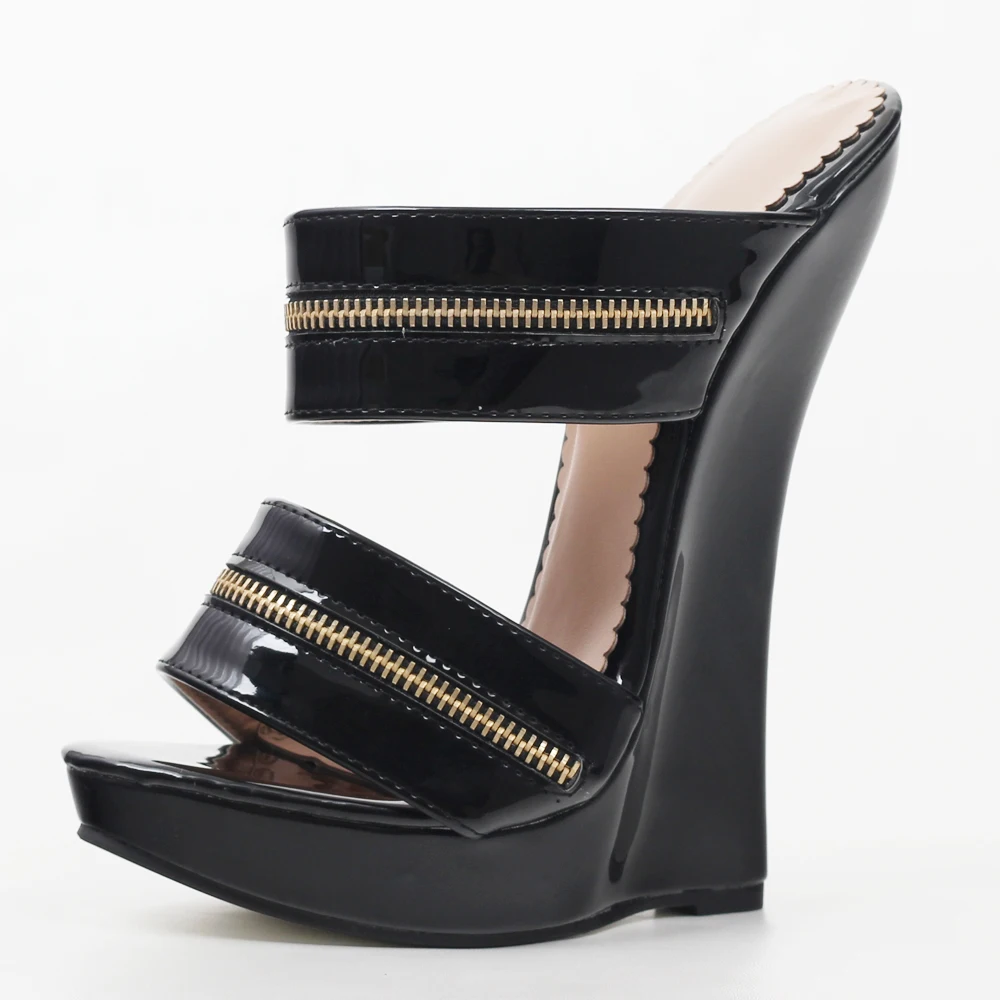 Босоножки женские из лакированной кожи, на высокой танкетке, с ремешком на щиколотке