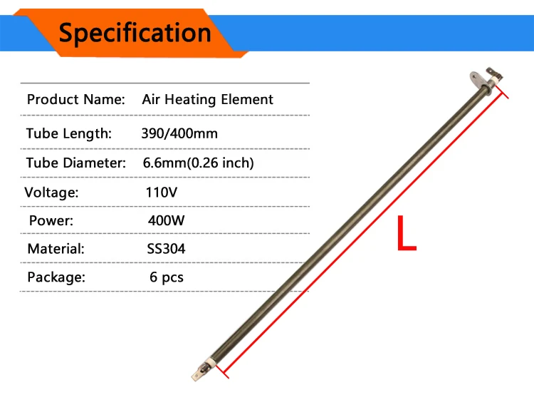 6 шт. 6.6X39 0400 мм 400 Вт Нагревательный элемент для электрической печи, электрическая тепловая трубка с отжигом, аксессуары для электронной печи