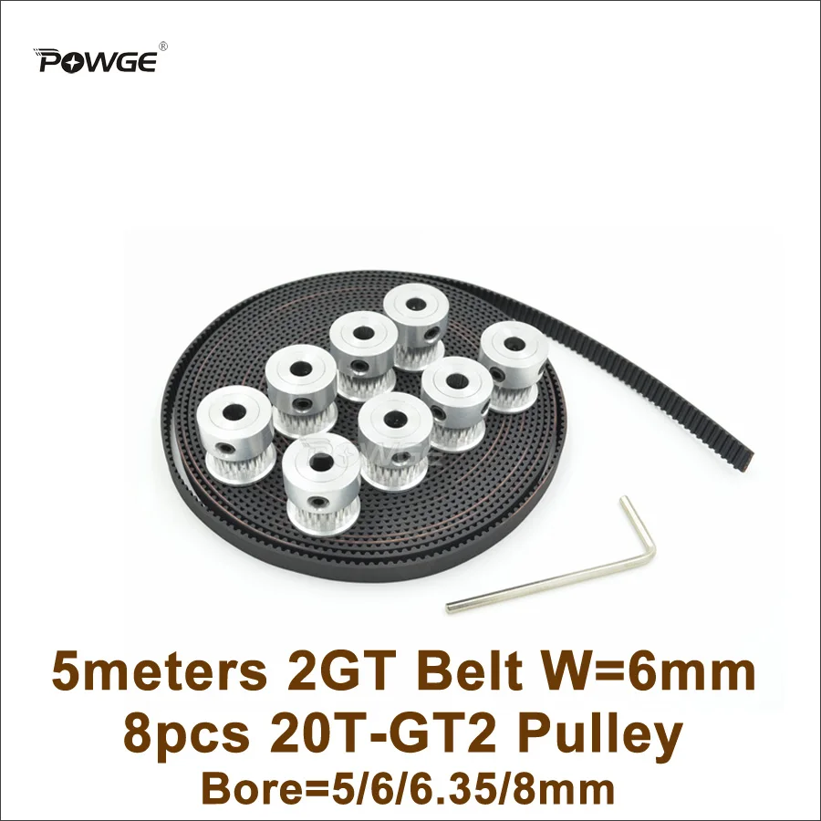 POWGE 8 шт. 20 зубьев GT2, зубчатый шкив, диаметр отверстия 5668 мм + 5 м GT2, Ширина ремня ГРМ 6 мм 20 зубьев 20 T 2GT, запчасти для 3D-принтера