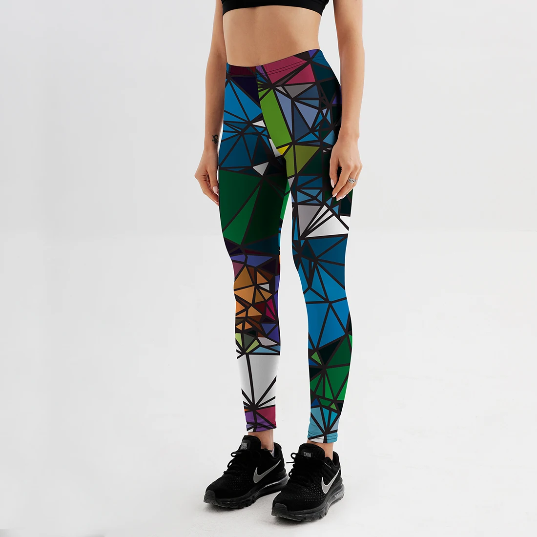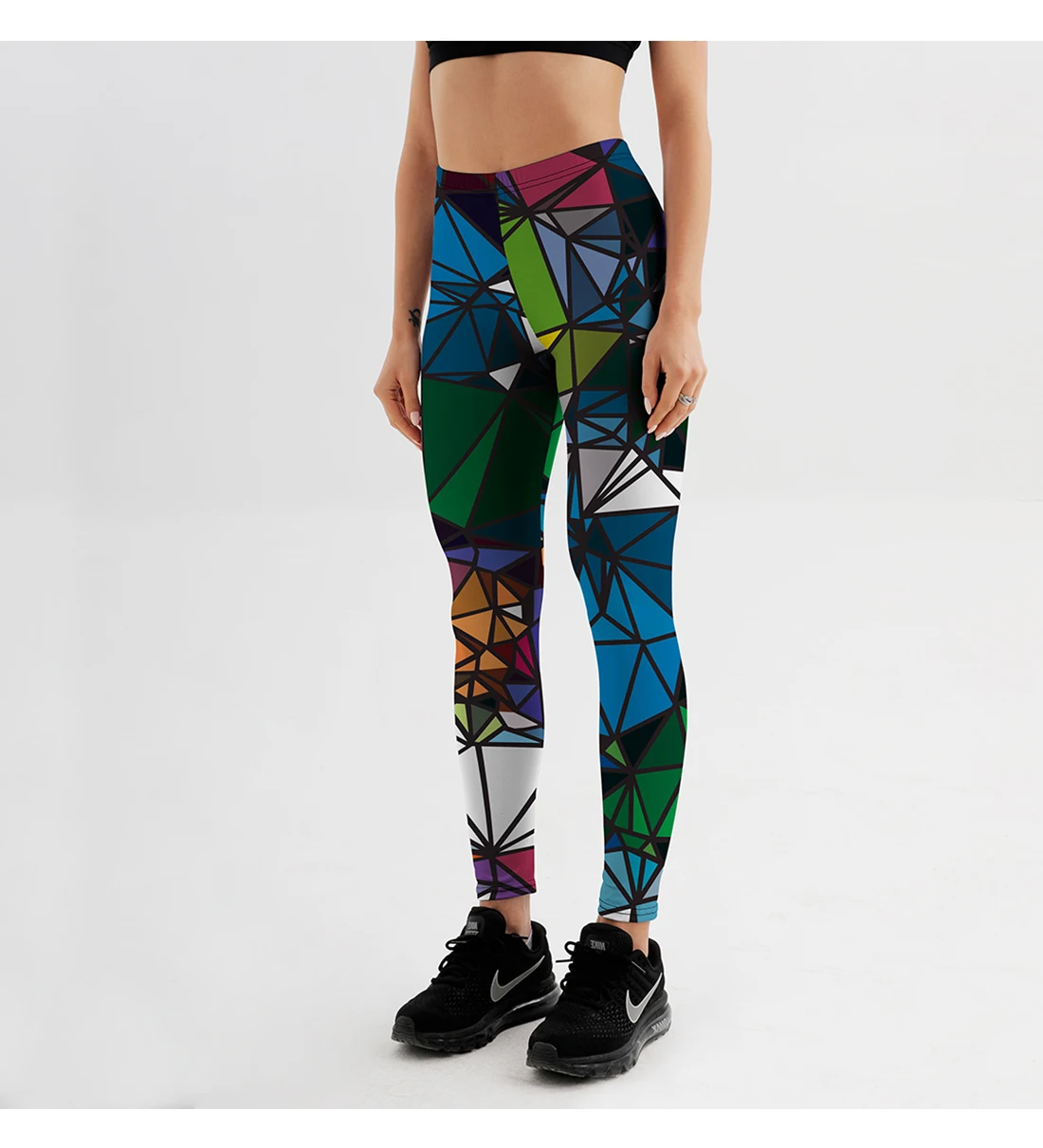Женские леггинсы Qickitout, эластичные штаны с цветными стразами, леггинсы с цифровой печатью, размера плюс