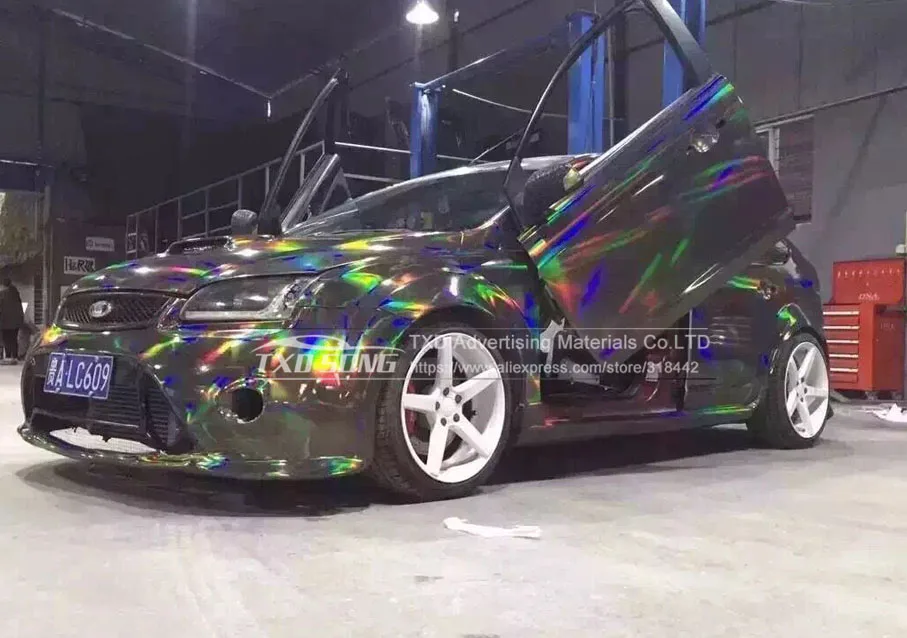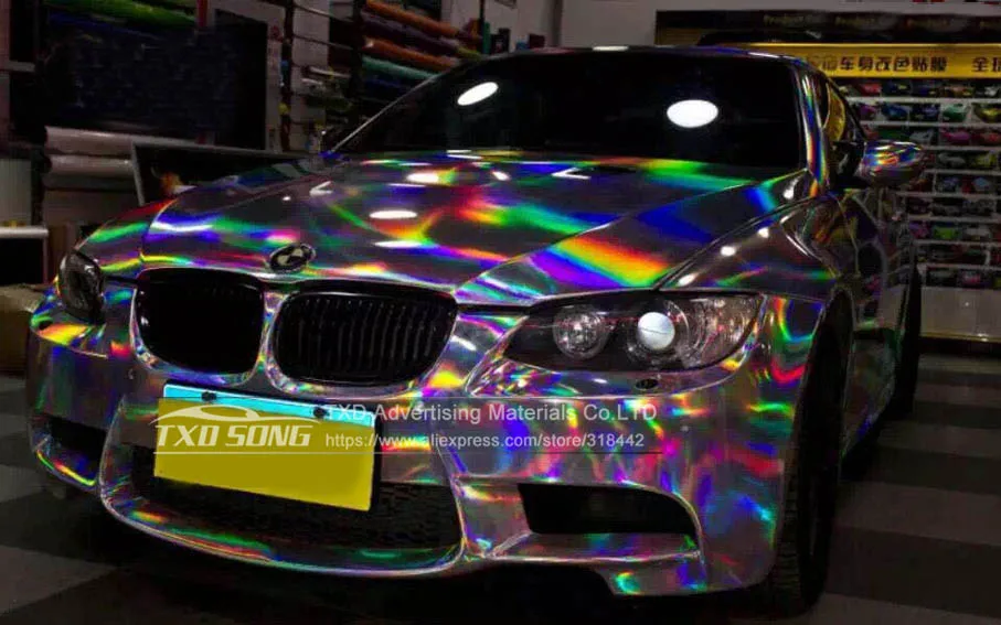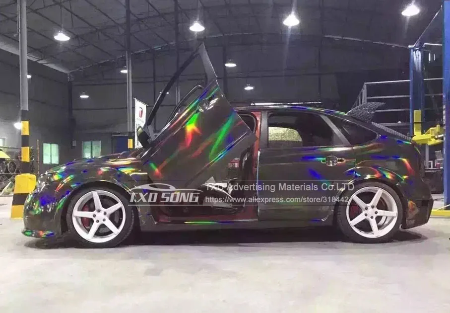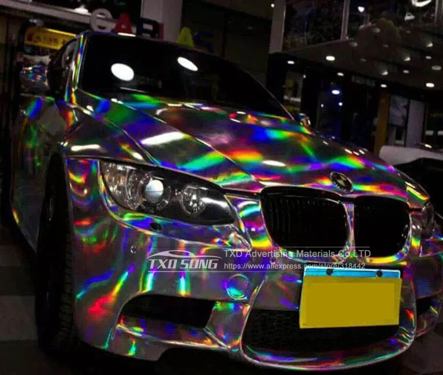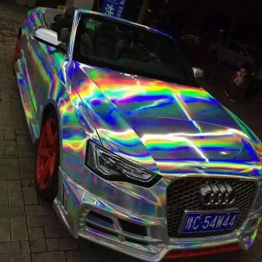 Серебристая Лазерная автомобильная пленка премиум-класса, голографическая Радужная наклейка, пленка для стайлинга автомобилей, черный, серебристый, хром, виниловый образец, бесплатная доставка