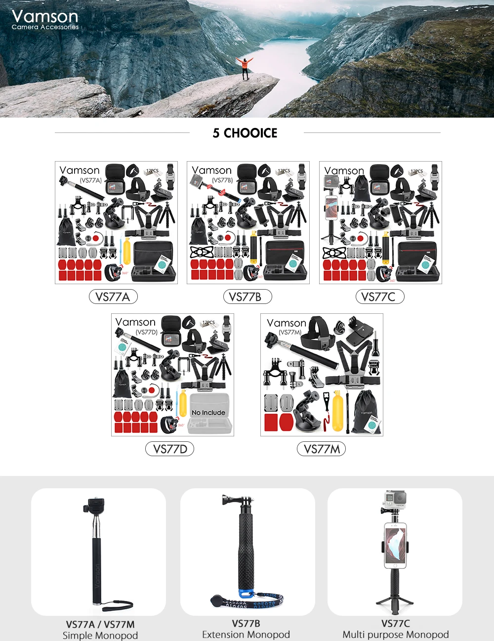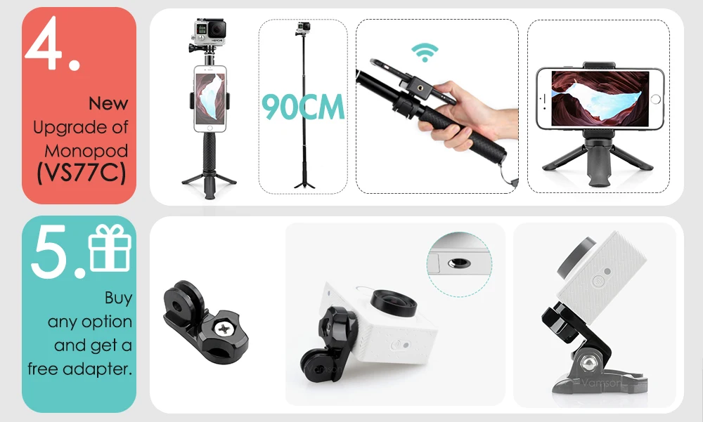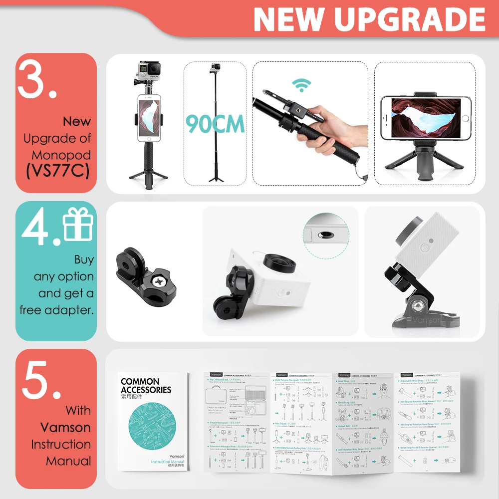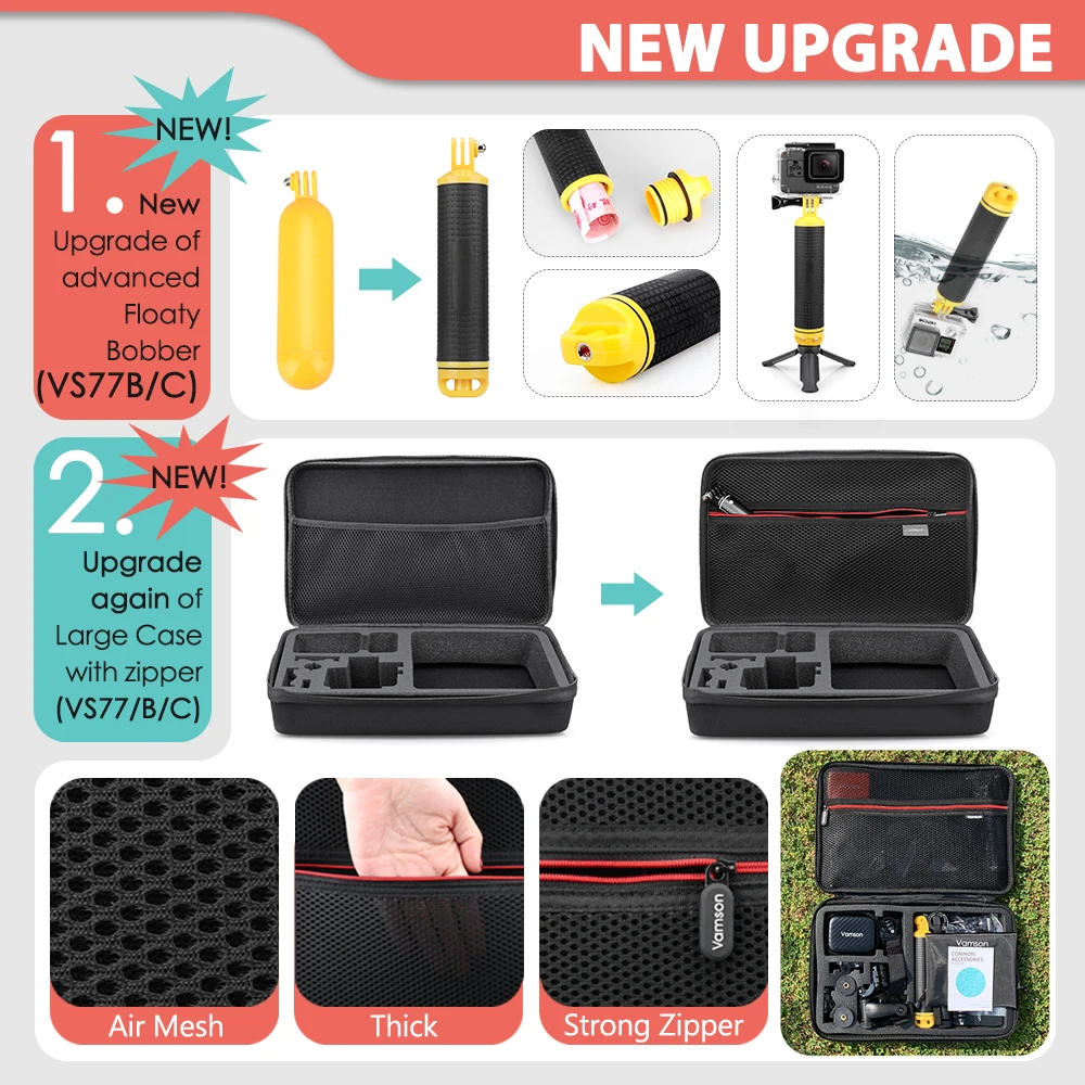 Набор аксессуаров для камеры Vamson VS77, селфи-Палка для Gopro hero 10, 9, 8, 7, 6, 5, 4, Insta360, OSMO Action, yi чехол