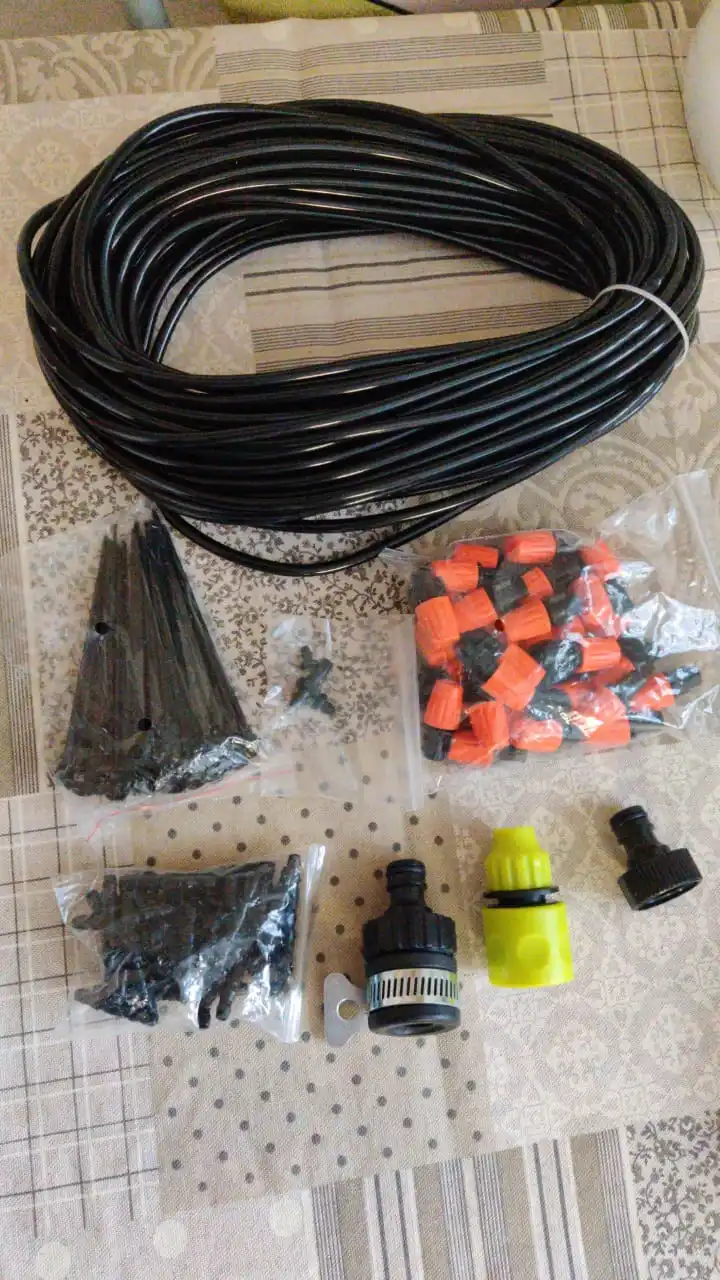 Дешево, будьте внимательны при выборе насадок, я пришел непригодным, поэтому мне нужно было разрезать маленькие кусочки трубы, чтобы сделать соединение. Также давление воды будет сильно падать по трубе, поэтому очень Минимальный поток воды и может не дойти до конца трубы. Моя длина равна 25 МТР. Я подобрал красные насадки, которые очень трудно настроить и контролировать