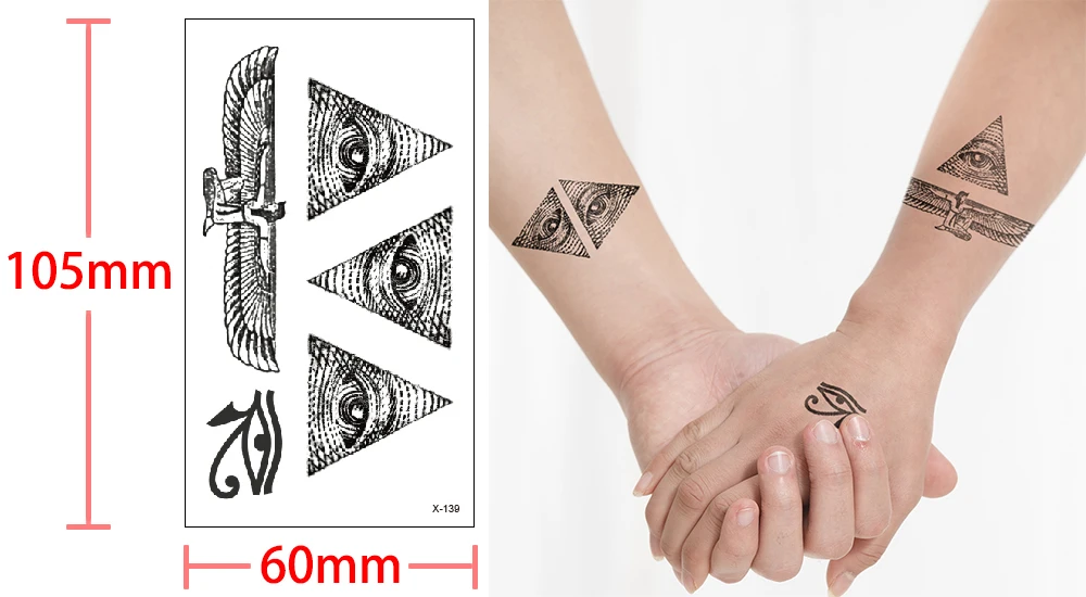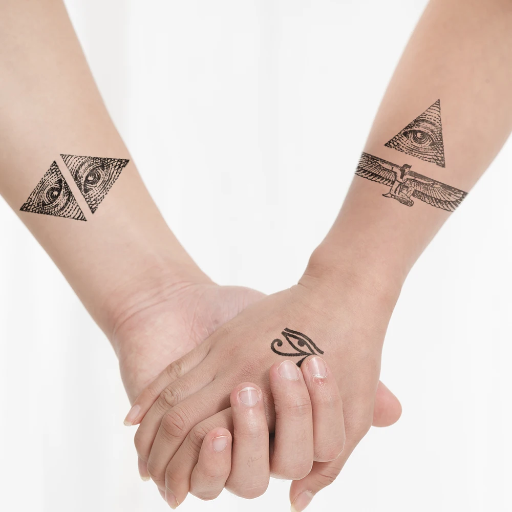 Египетские треугольные крылья для глаз тотем, Переводные Временные татуировки, водостойкие временные наклейки для мужчин, женщин, мужчин, сексуальные крутые красивые боди-арт