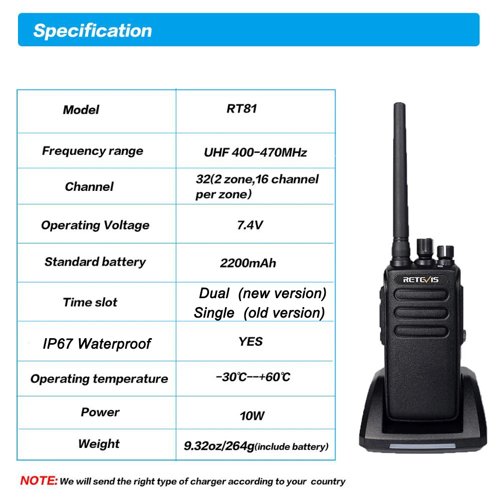 1. Введите стильную цифровую эпоху с цифровой портативной рацией Retevis RT81 DMR. RT81 предлагает удивительно чистую, полностью тихую цифровую голосовую связь.