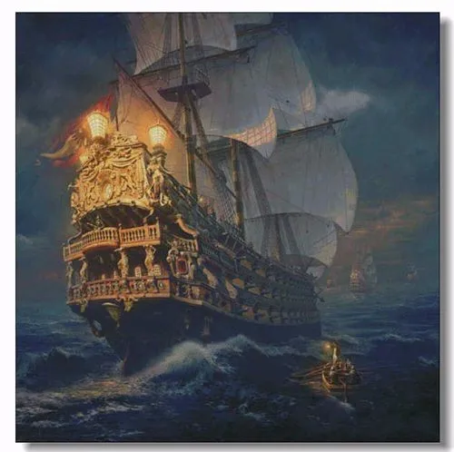 Гладкий парусный Морской парусник пейзаж для вышивки рукоделие 14CT...