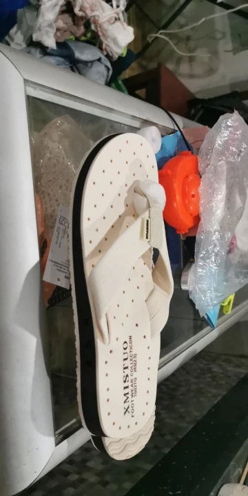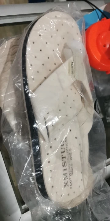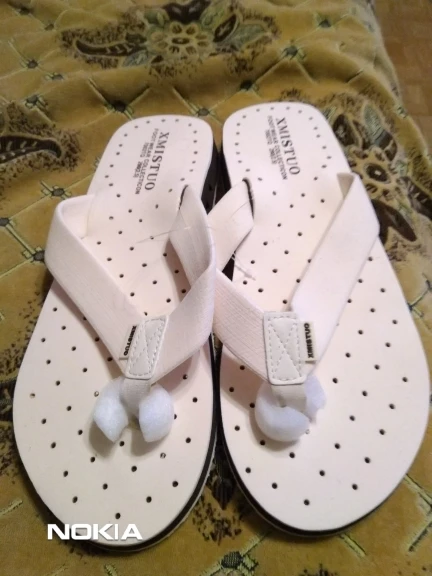 Товар соответствует описанию. У меня широкая стопа, и мне кажется странным с этими тапочками.