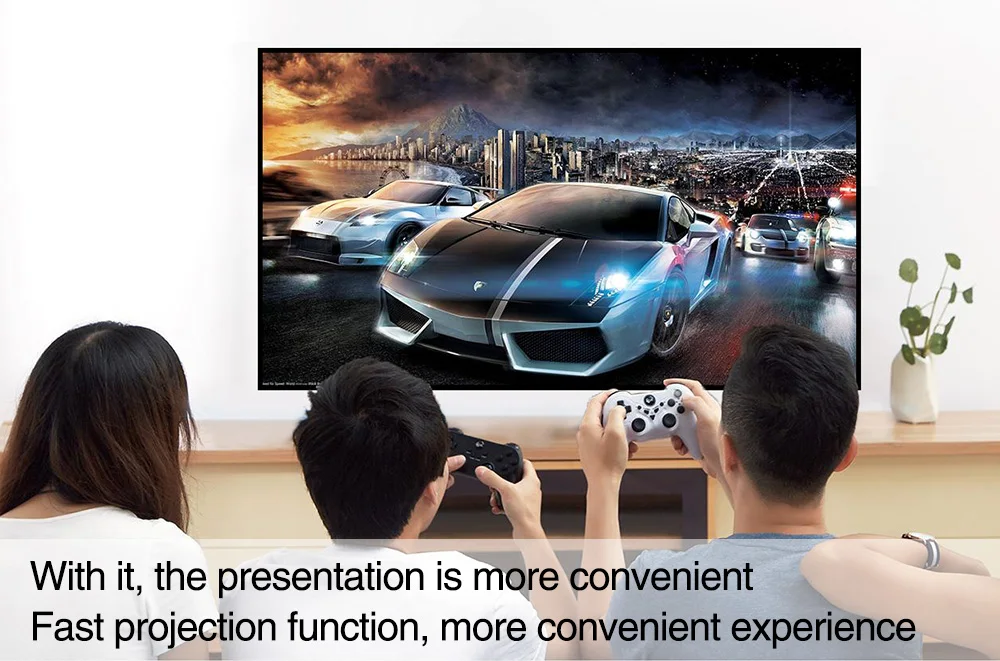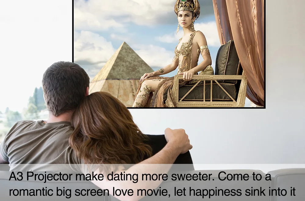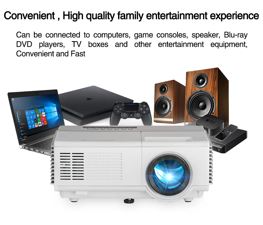Легко отбрасывает гигантский экран размером 40-120 дюйма, регулируя расстояние, смотрите фильмы, слушайте концерты, Играйте в игры и делайте всю работу на одной стене
