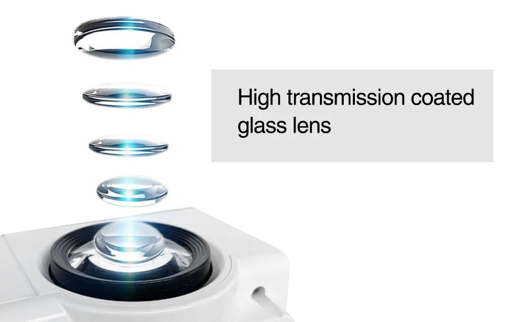 Оптическая проекционная линза, состоящая из 5 стеклянных линз с высокой передачей, имеет отличную светопропускаемость, может эффективно уменьшить Цвет объектива и гарантировать, что проецируемое изображение яркое и равномерное, И обеспечить настоящий цвет