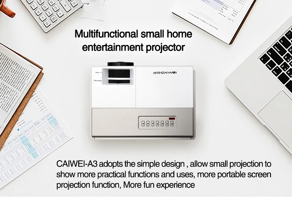 Проектор версии Android CAIWEI A3AB-Система: ОС Android 6,0-4-ядерный процессор и графический процессор-WIFI: 2,4G-Версия Bluetooth: Поддержка-Память: 1 Гб ОЗУ и 8 Гб ПЗУ