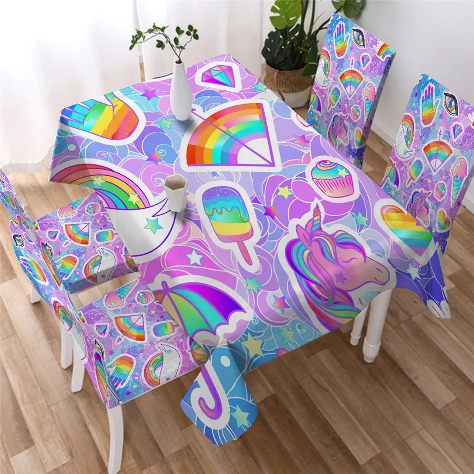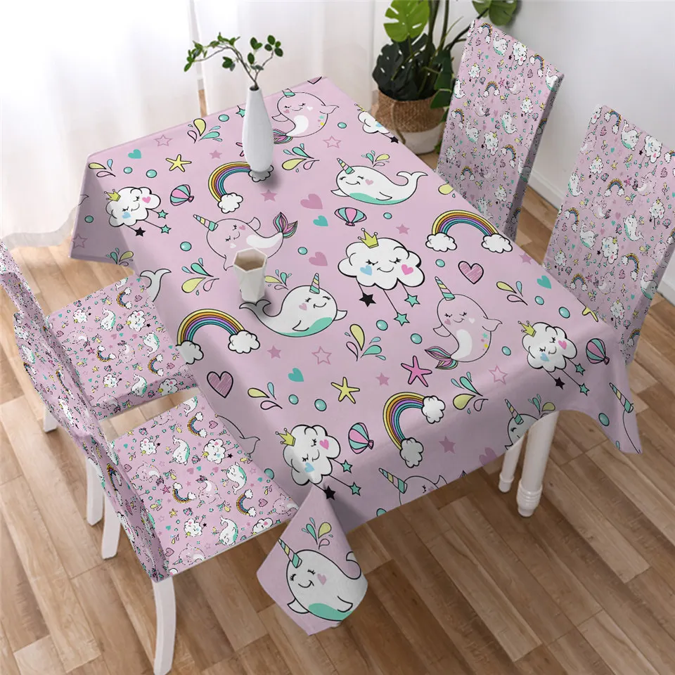BeddingOutlet, милая скатерть с Китом, Нарвал скатерть с единорогом, мультяшная розовая скатерть, облака, радуга, водонепроницаемая скатерть
